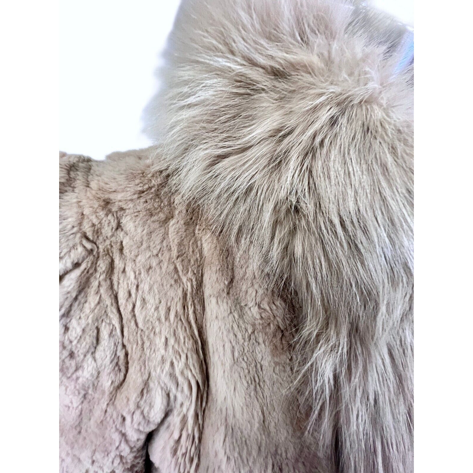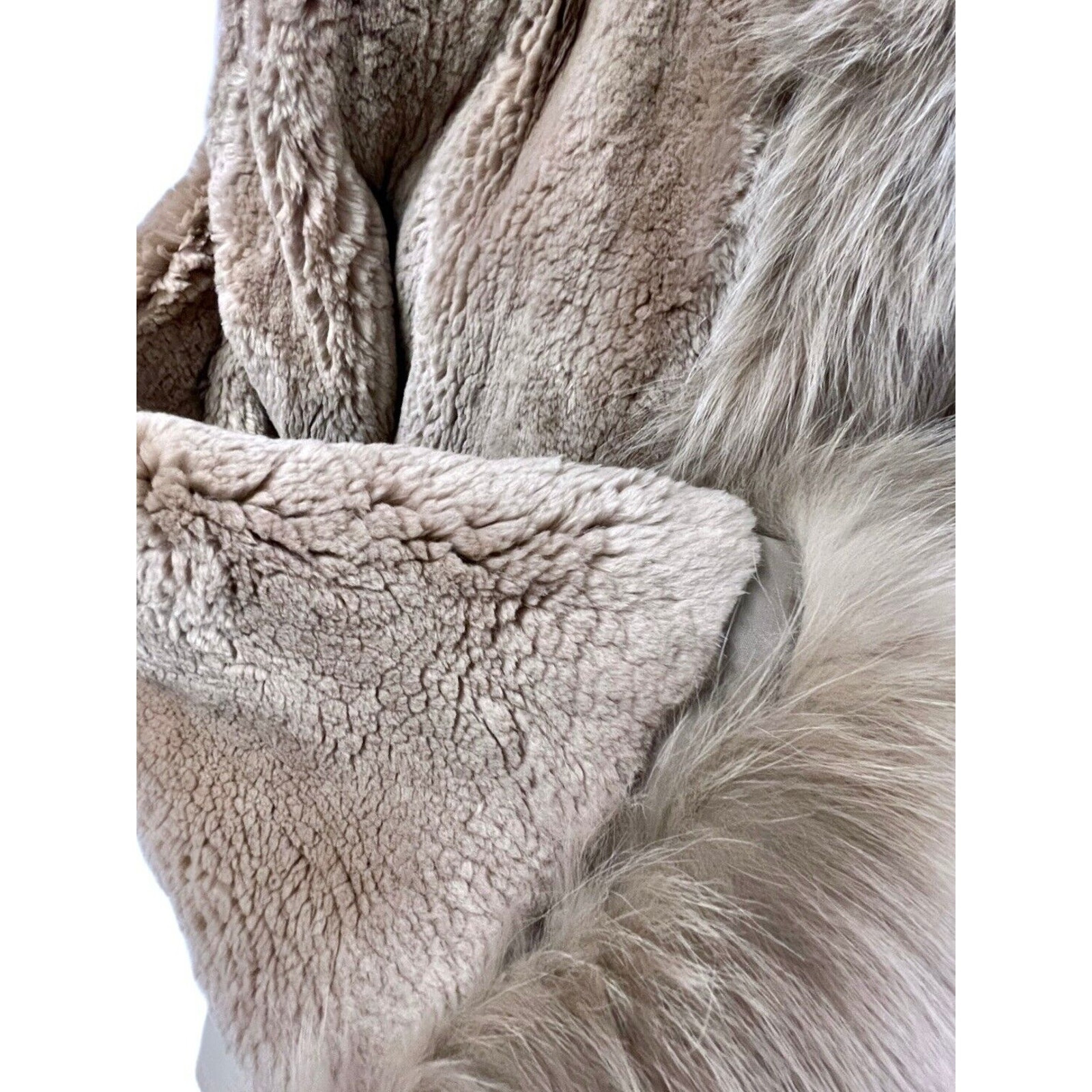 Exquisite Vintage Long Blush Beige Sheared Beaver Coat with Fox Trim Women's S