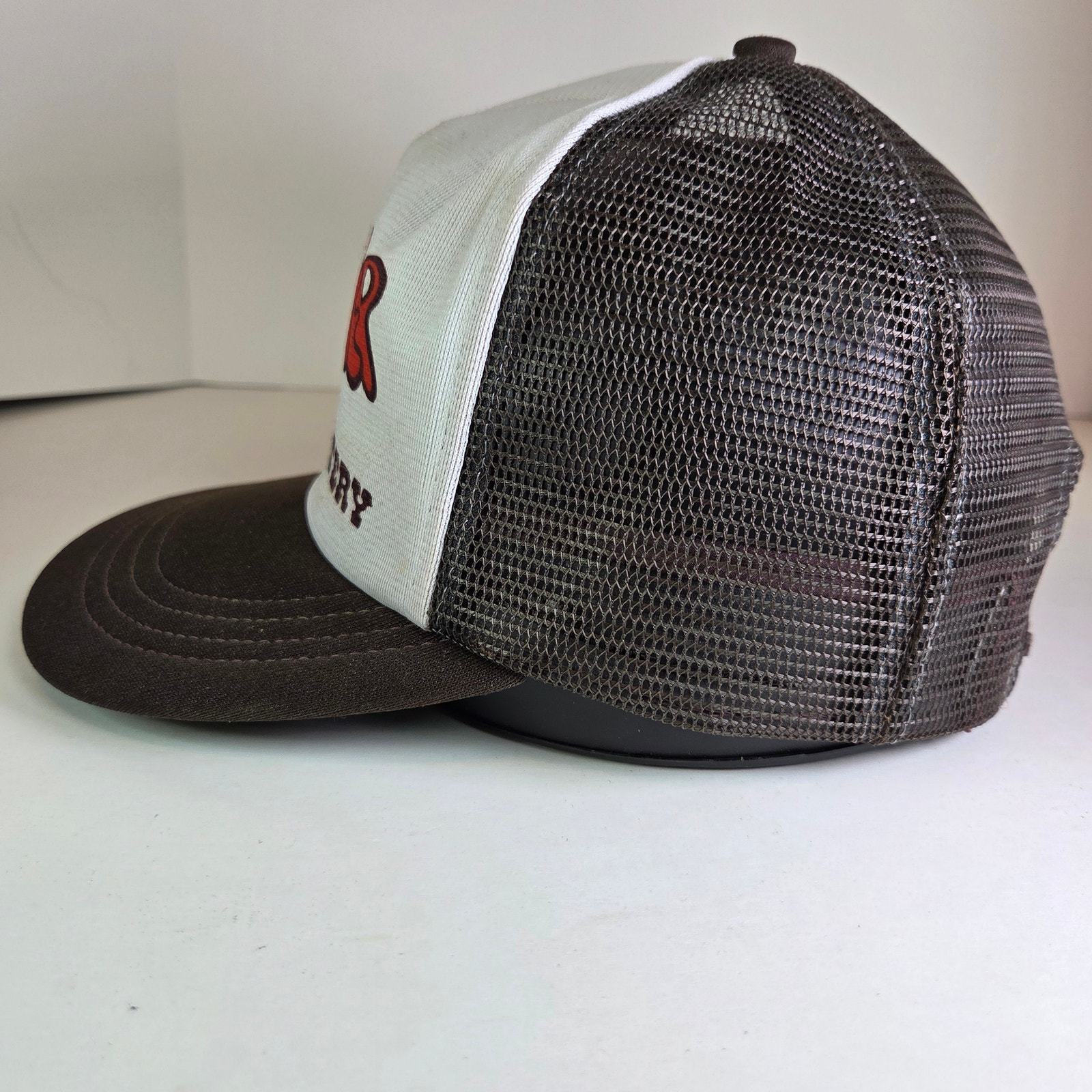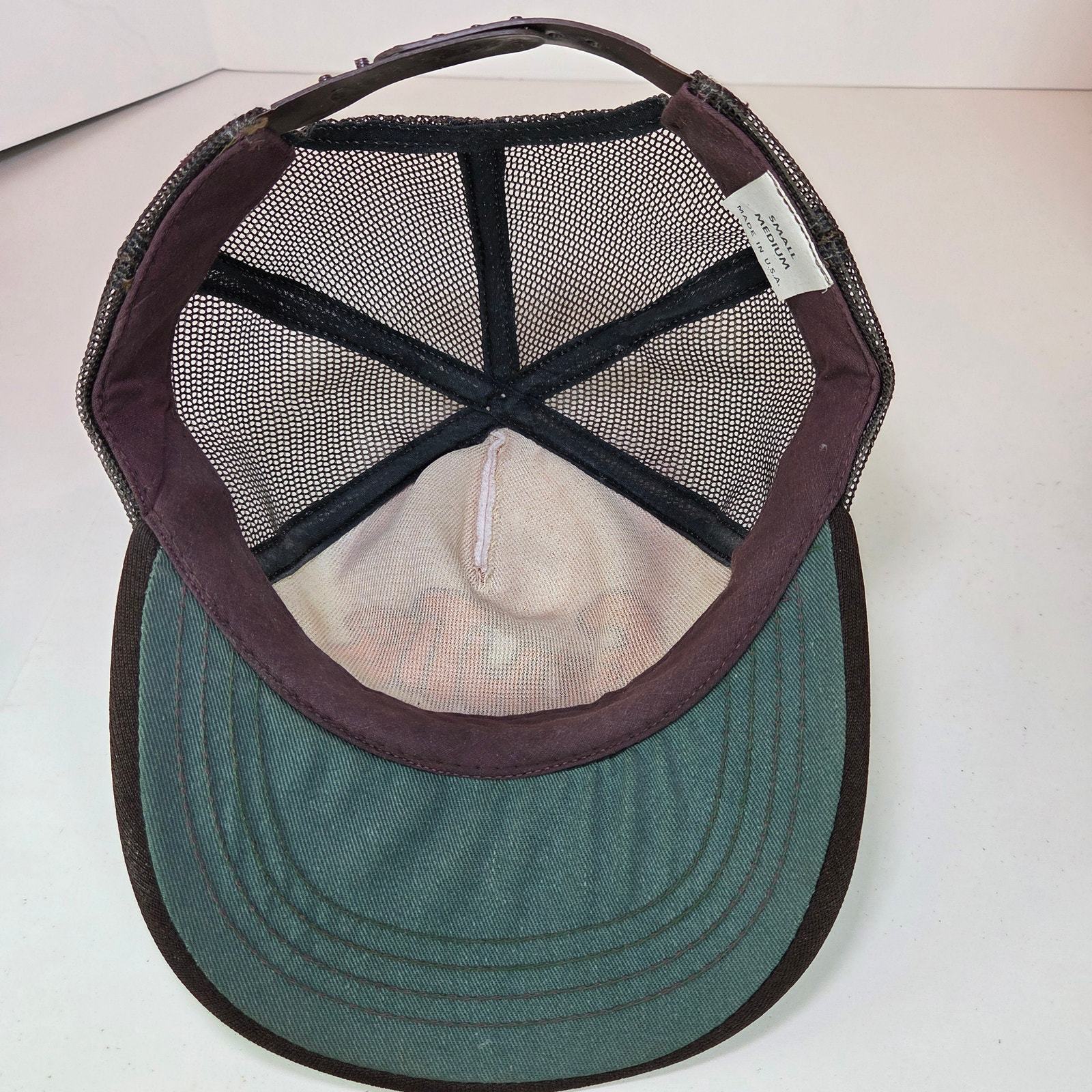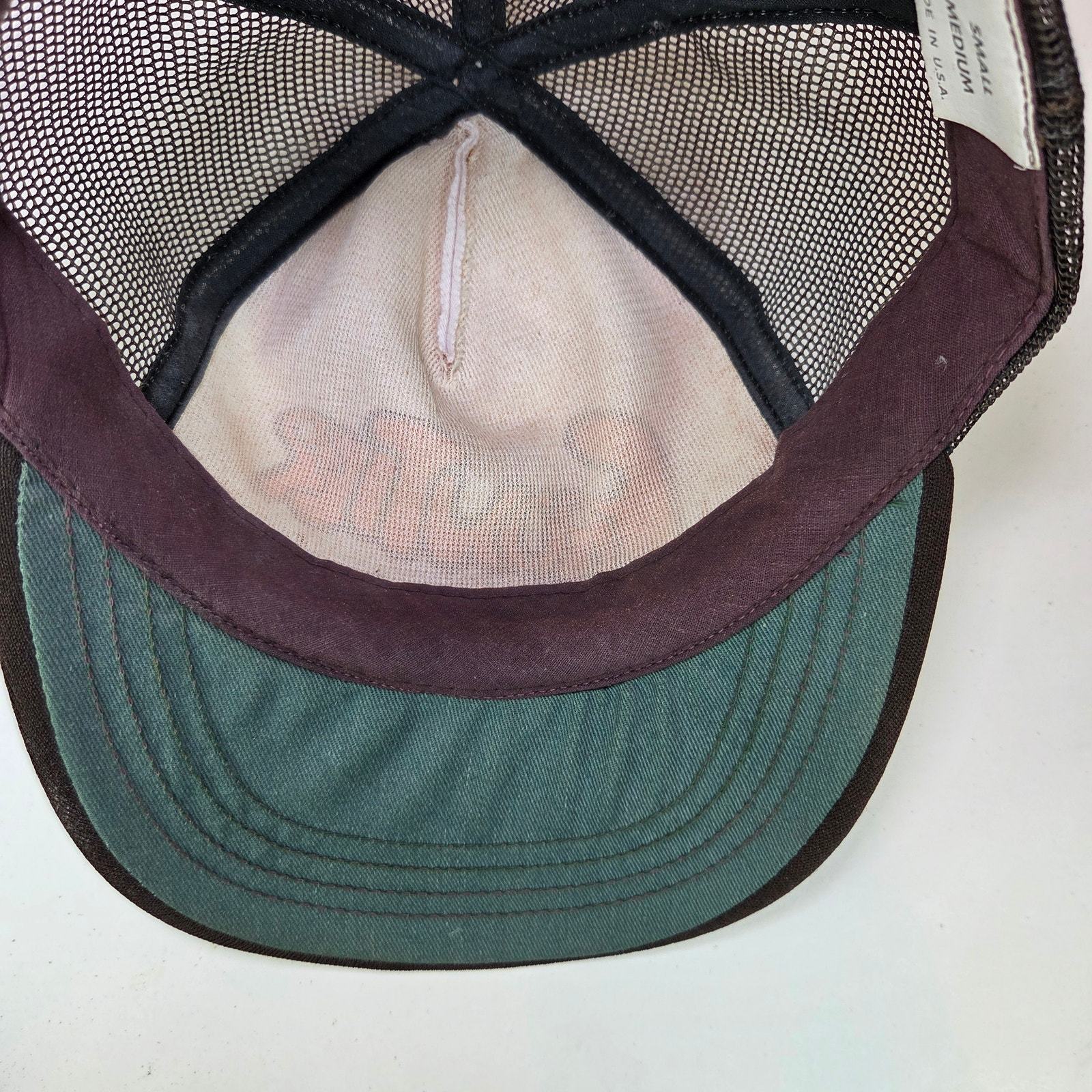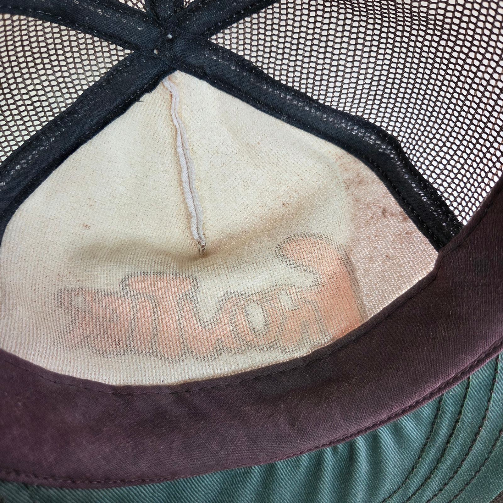 Condition: Foam deterioration (most foam fallen out), discoloration inside sweatband, light signs of wear on mesh and brim. Still structurally intact.