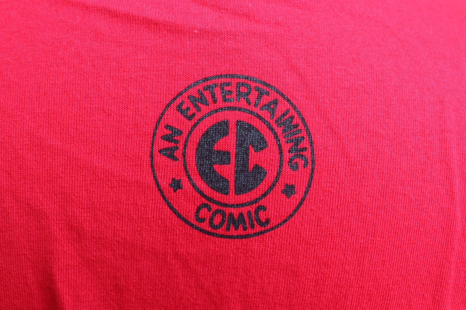 The NOS Vintage 2011 EC Comics TWO-FISTED TALES Graphitti T-Shirt is a multicolor, short-sleeve tee featuring a design by Graphitti Designs. Available in multiple sizes, this unisex-adult shirt is perfect for fans of classic EC Comics looking to show off their love for the iconic TWO-FISTED TALES series. Made for regular fit, this shirt is a must-have for any collector or enthusiast looking to add a unique and nostalgic piece to their wardrobe.