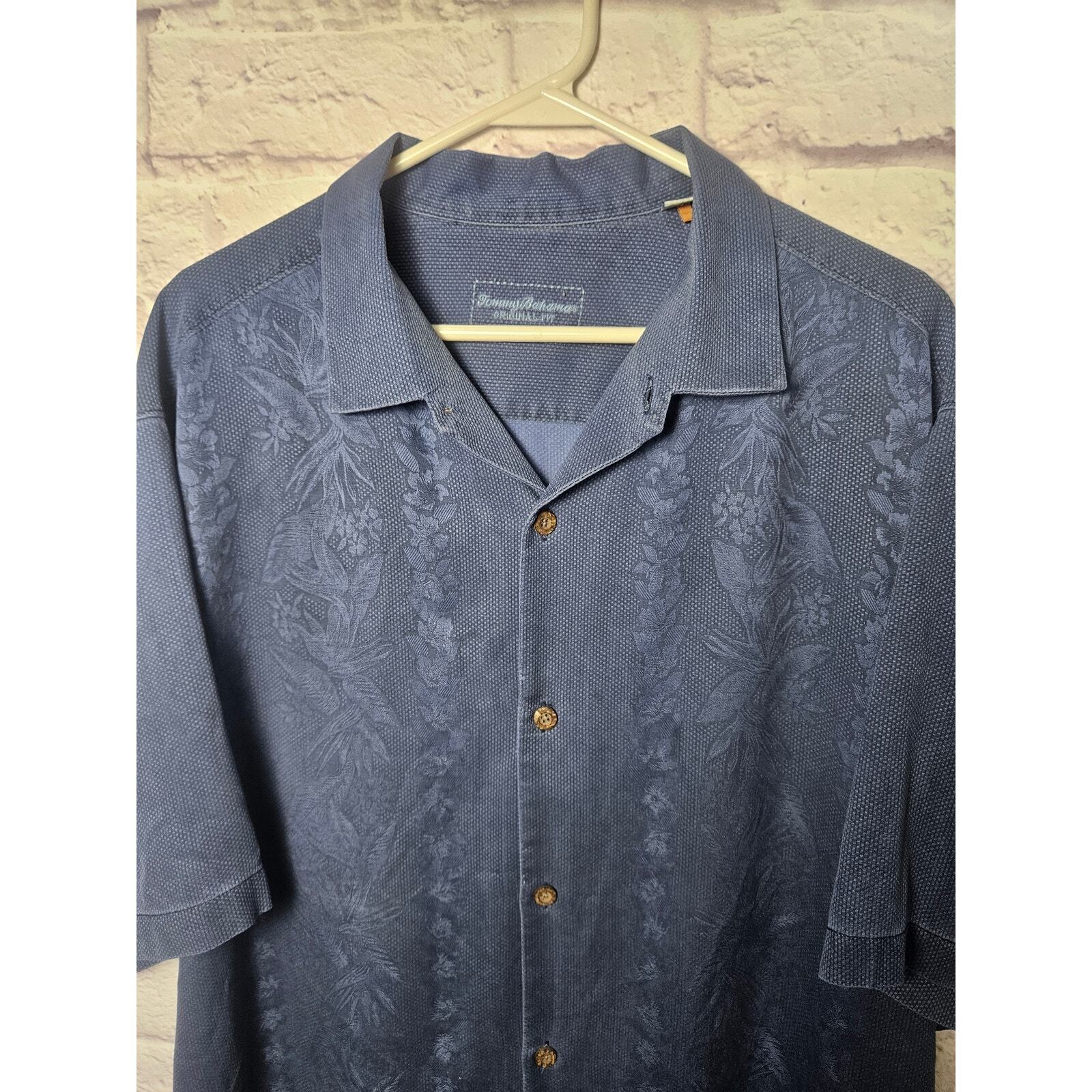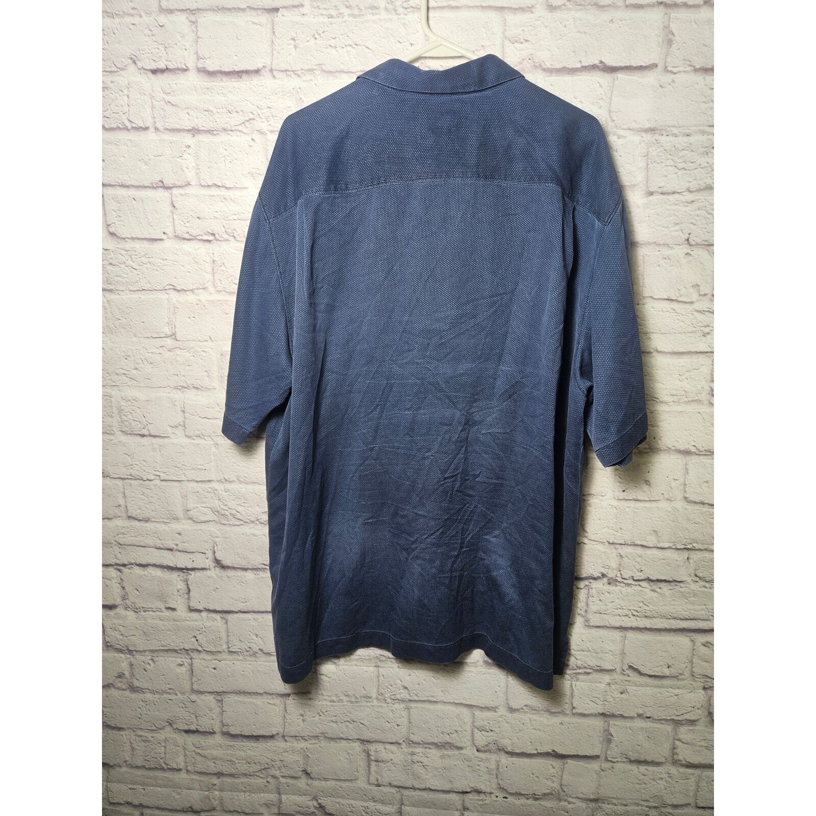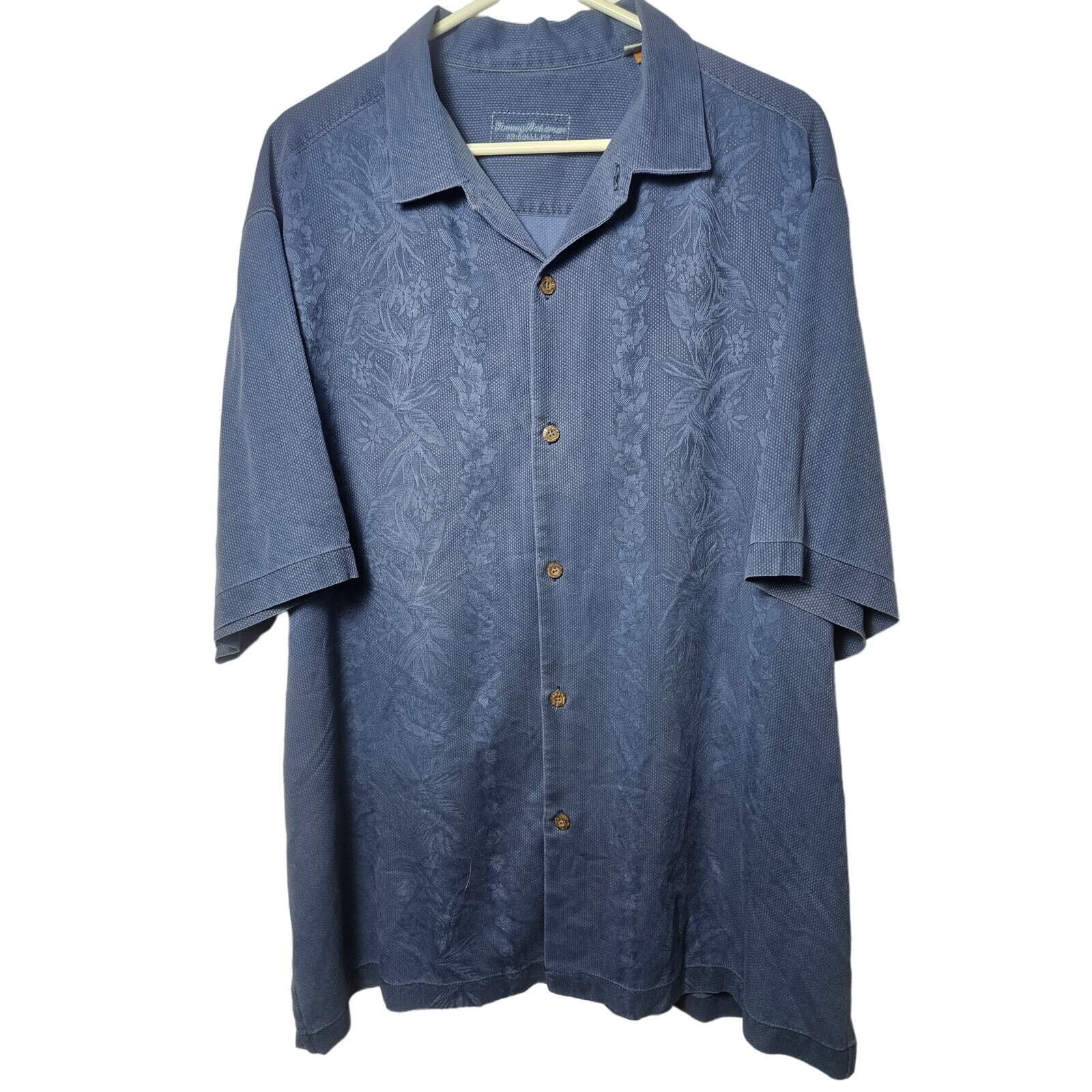 Tommy Bahama Mens 100% Silk Short Sleeve Shirt Blue Size XL Floral Pattern
