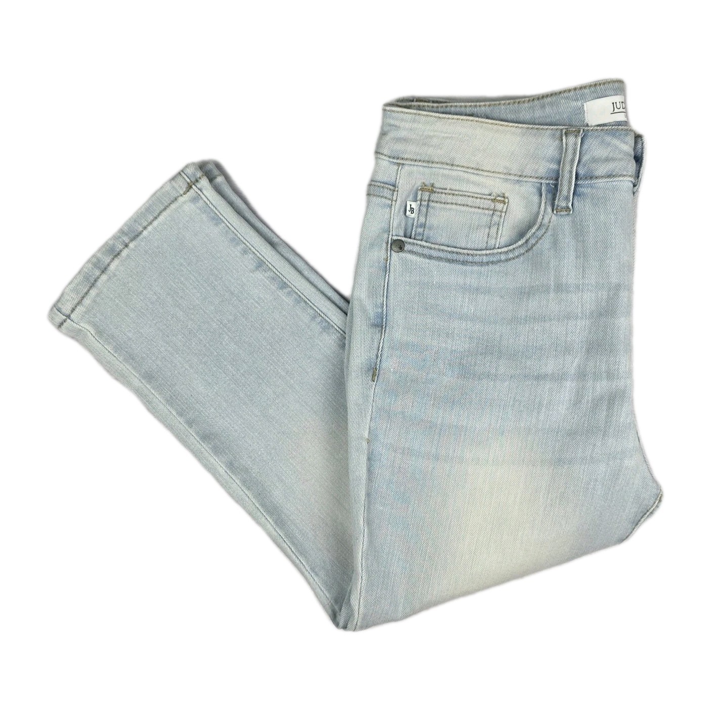 The Judy Blue Jeans Women's Size 7/28 Katie Skinny Fit Vintage Wash Denim Capri Pants are stylish and versatile addition to any woman's wardrobe. These pants feature a solid blue color, a light fabric wash, and a mid-rise waist with a regular fit. Made from a comfortable blend of polyester, spandex, and cotton, these capri pants offer both style and practicality with a 5-pocket design and easy care instructions. Perfect for the summer, fall, or spring seasons, these jeans are a great choice for a city or preppy-inspired look.