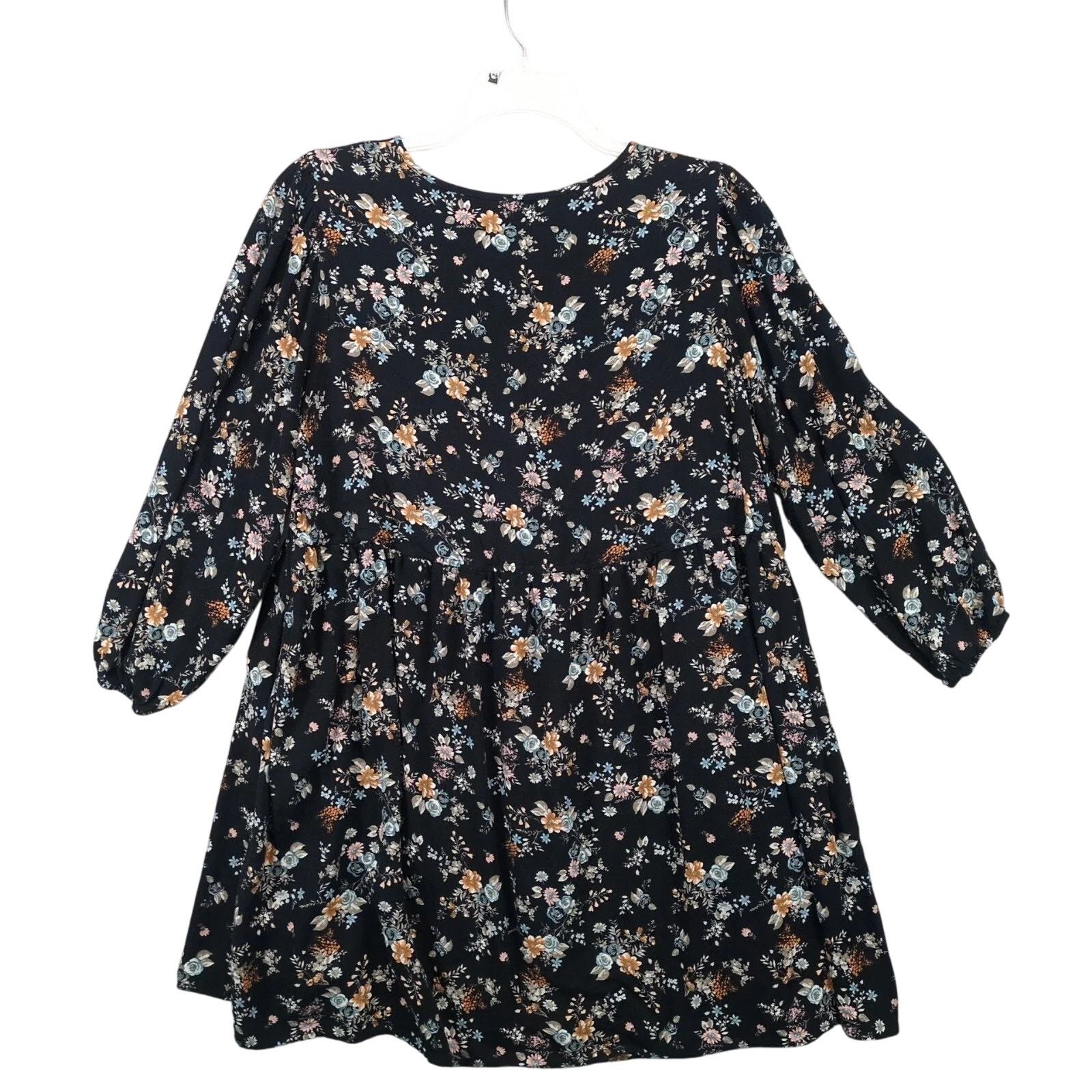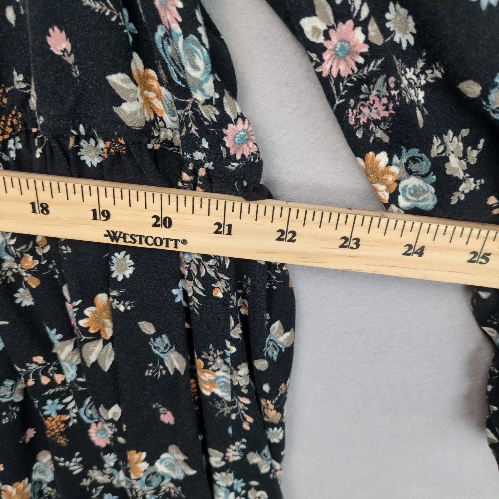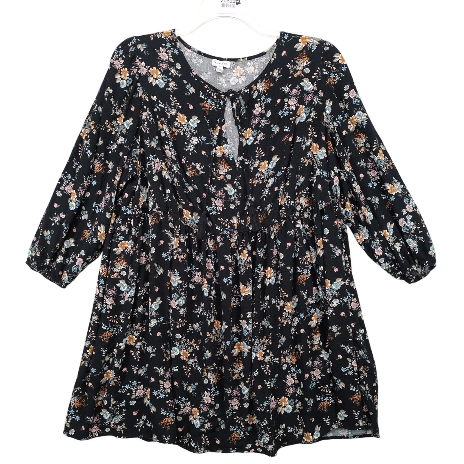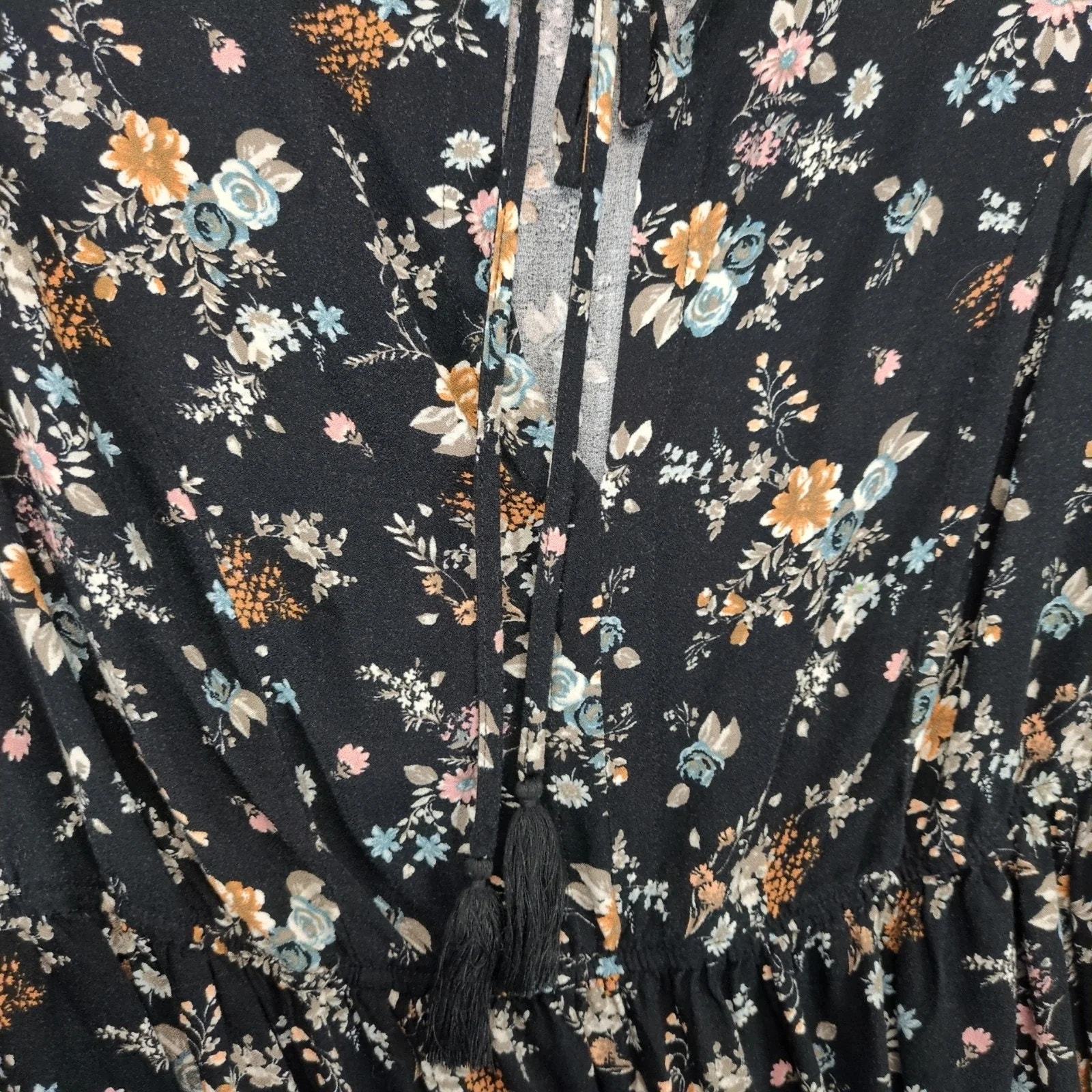 Love Fire Women's Plus Size 1X Black Floral Dress Puff Sleeve Tassel