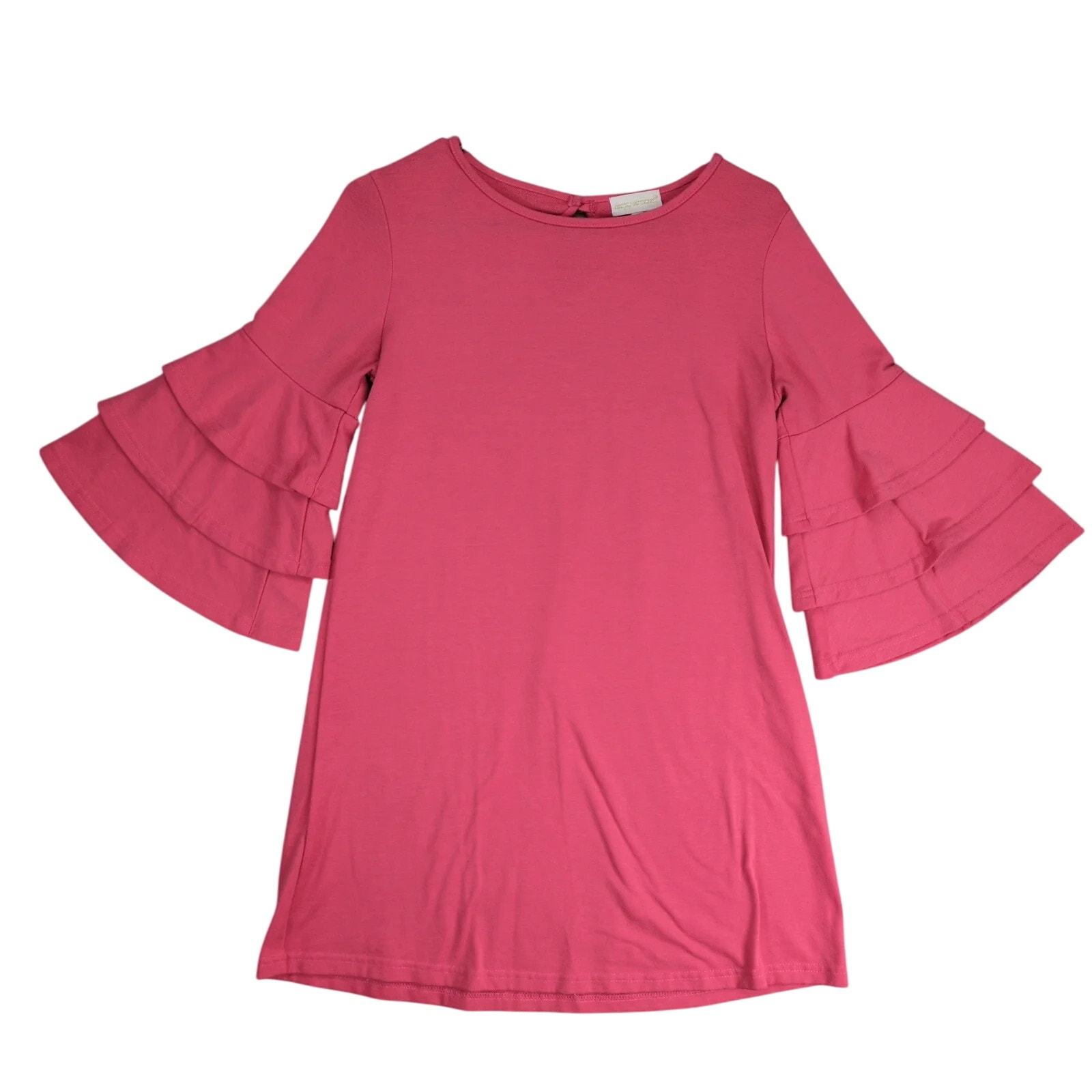 Simply Southern Pink Ruffle Bell Sleeve Dress Sz S Casual Knit A-Line Beachy