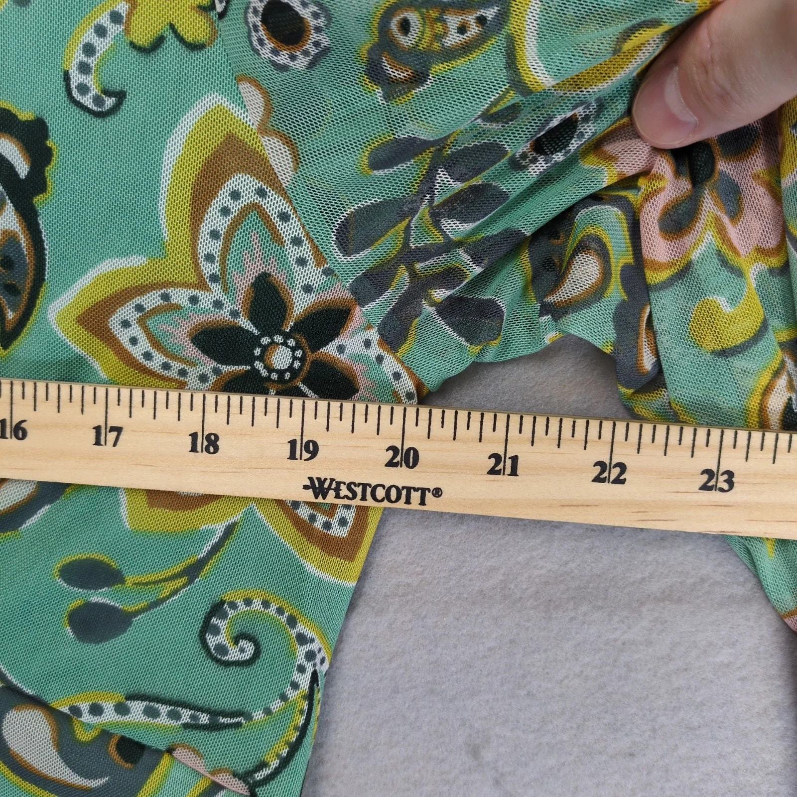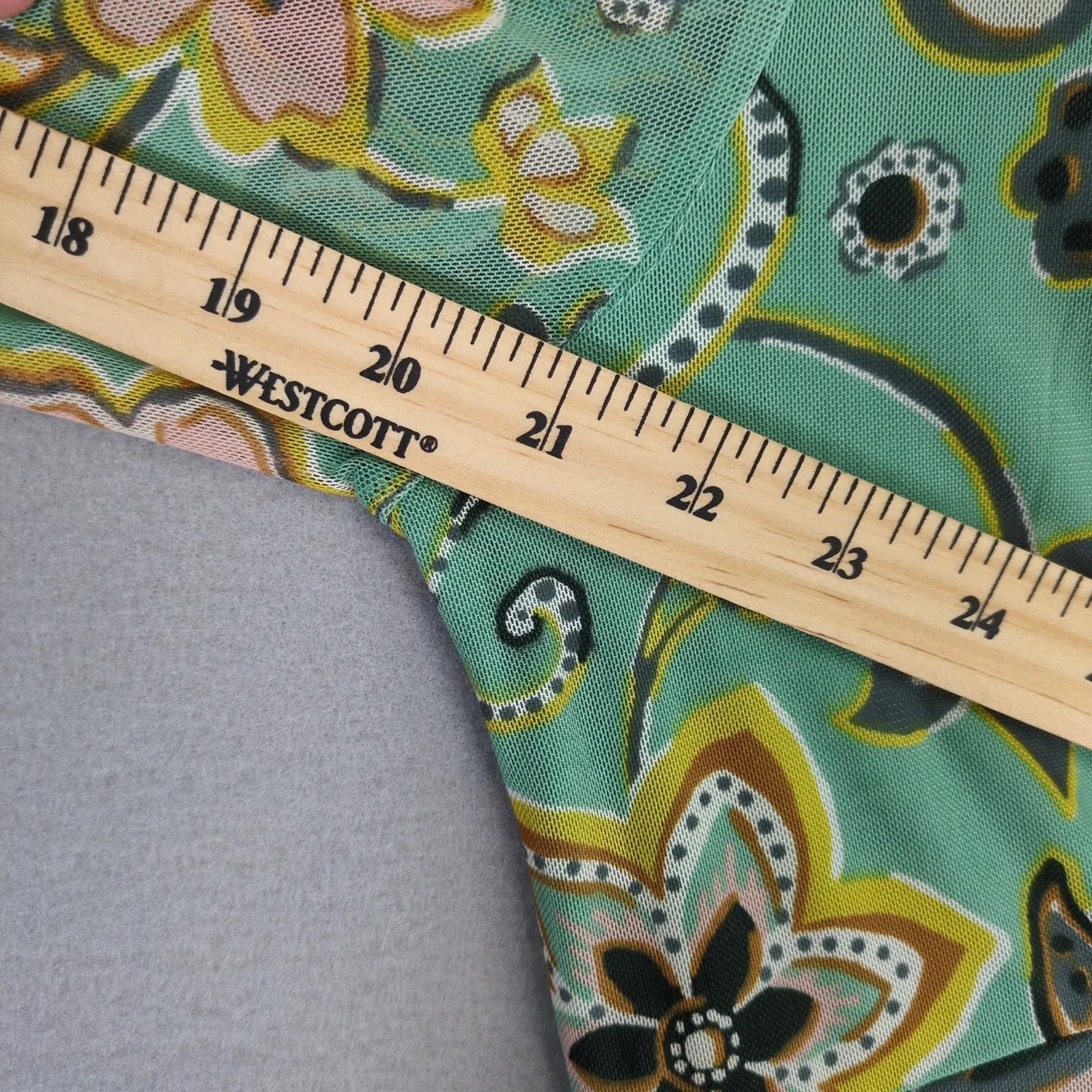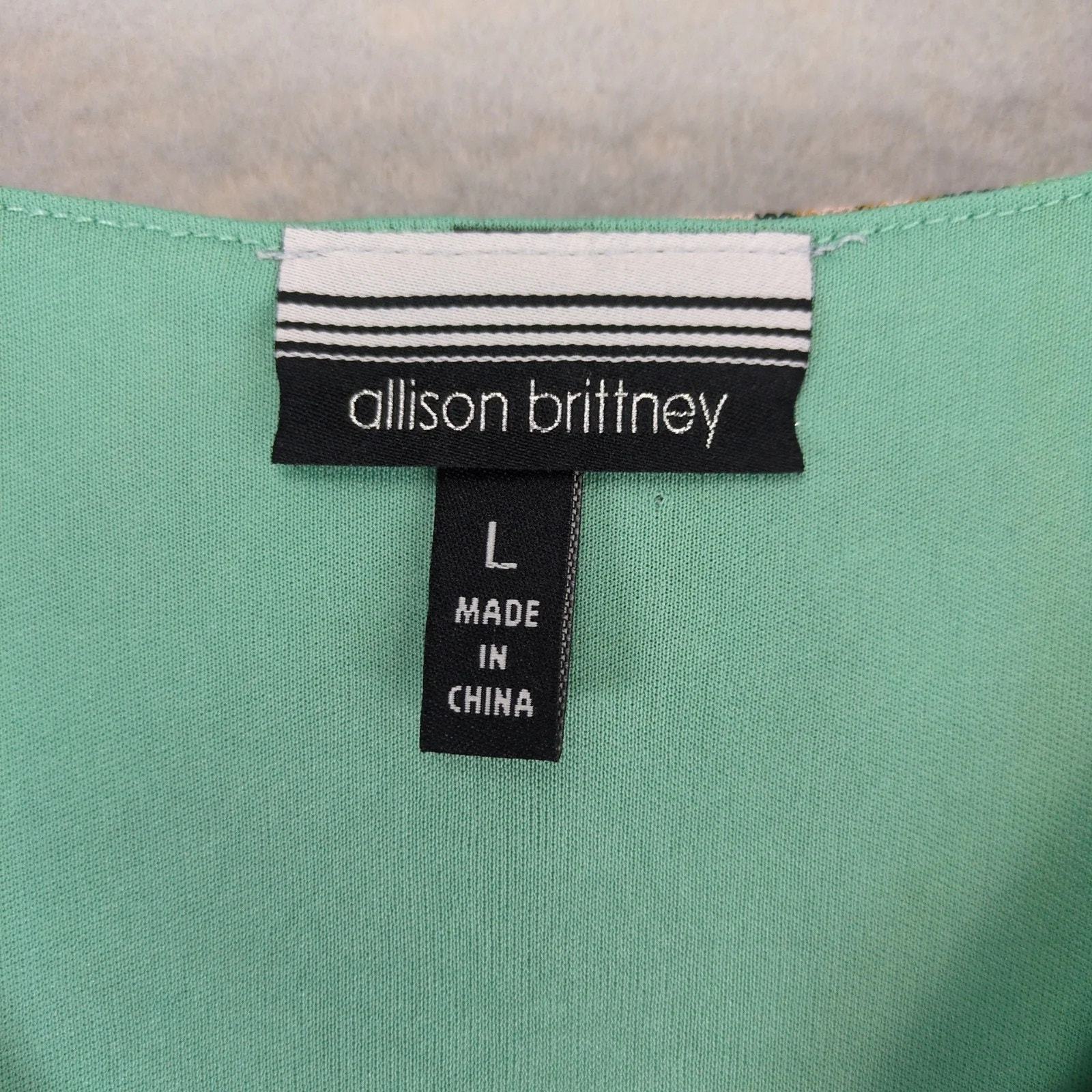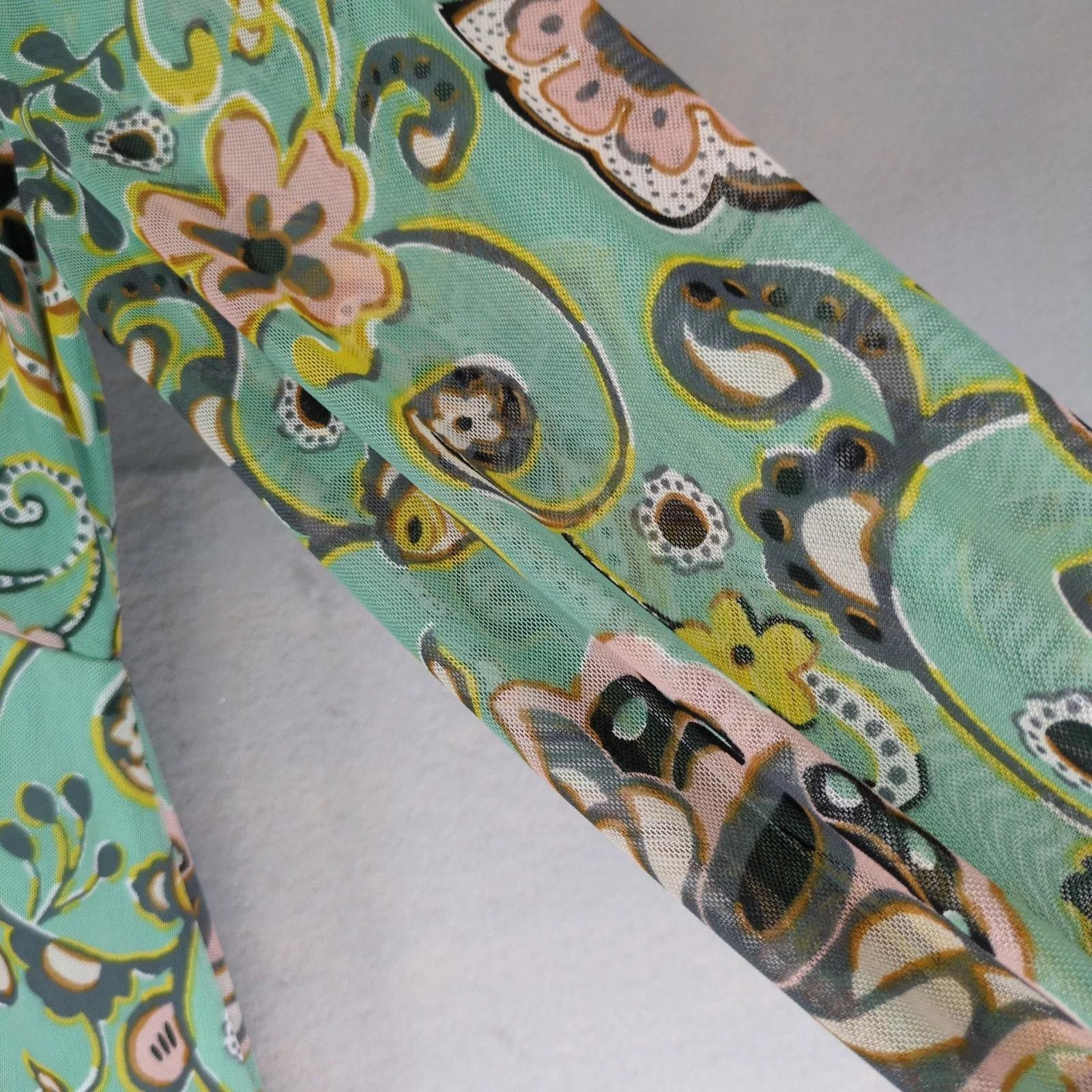 Allison Brittney Green Floral Paisley Dress Sz L Sheer Overlay Wrap-V Neckline