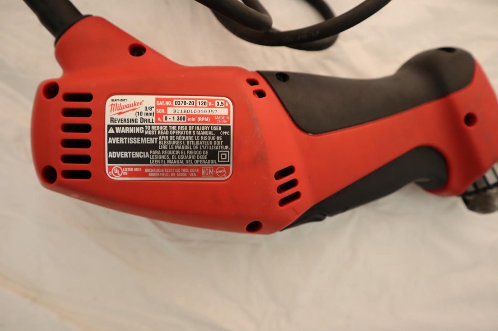 Milwaukee Heavy Duty 3/8" (10 mm) Corded Electric Reversing Drill 0370-20 3.5A