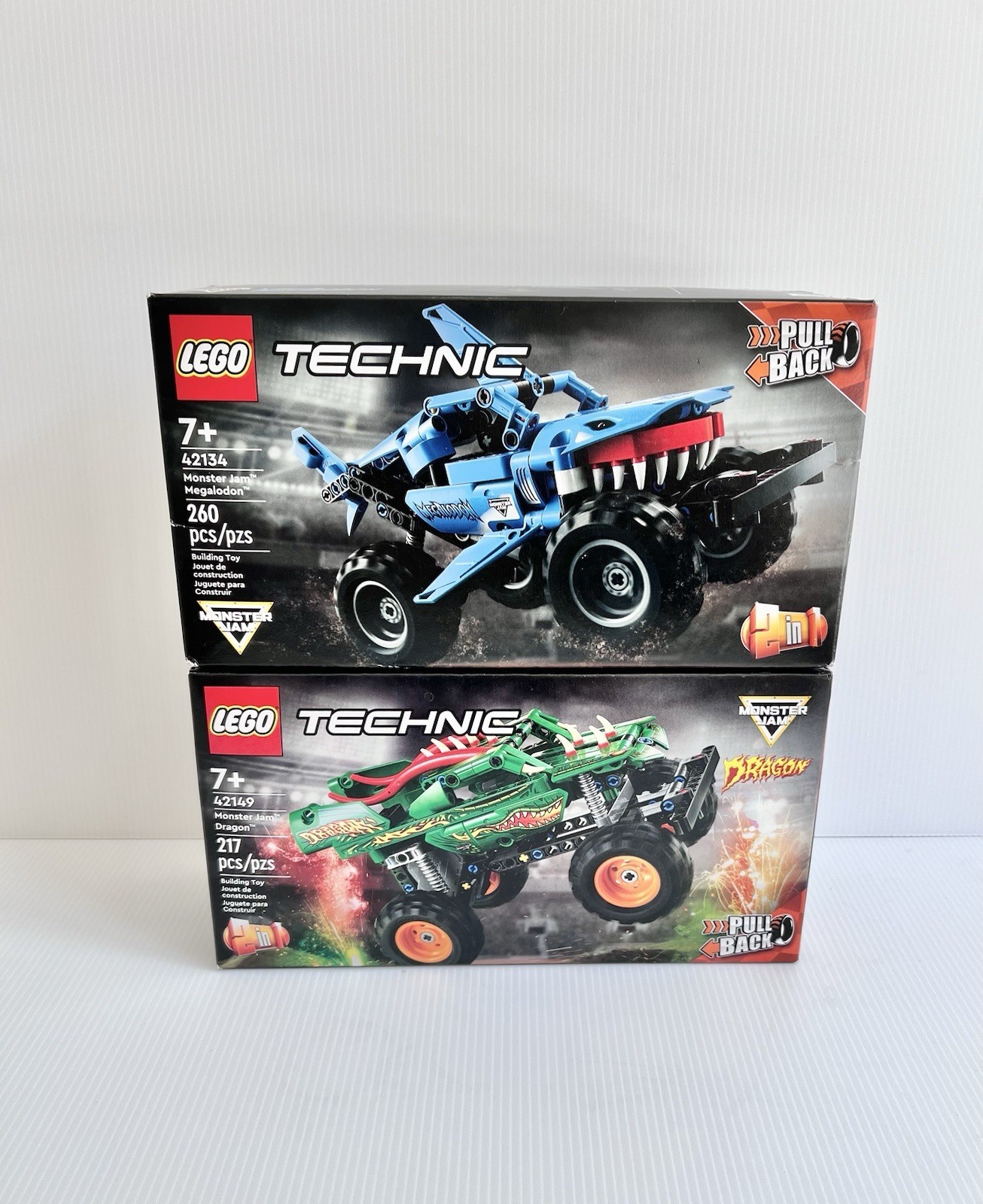 TWO Lego Monster Jam Trucks Megalodon Dragon 42134 42149 New Factory Sealed