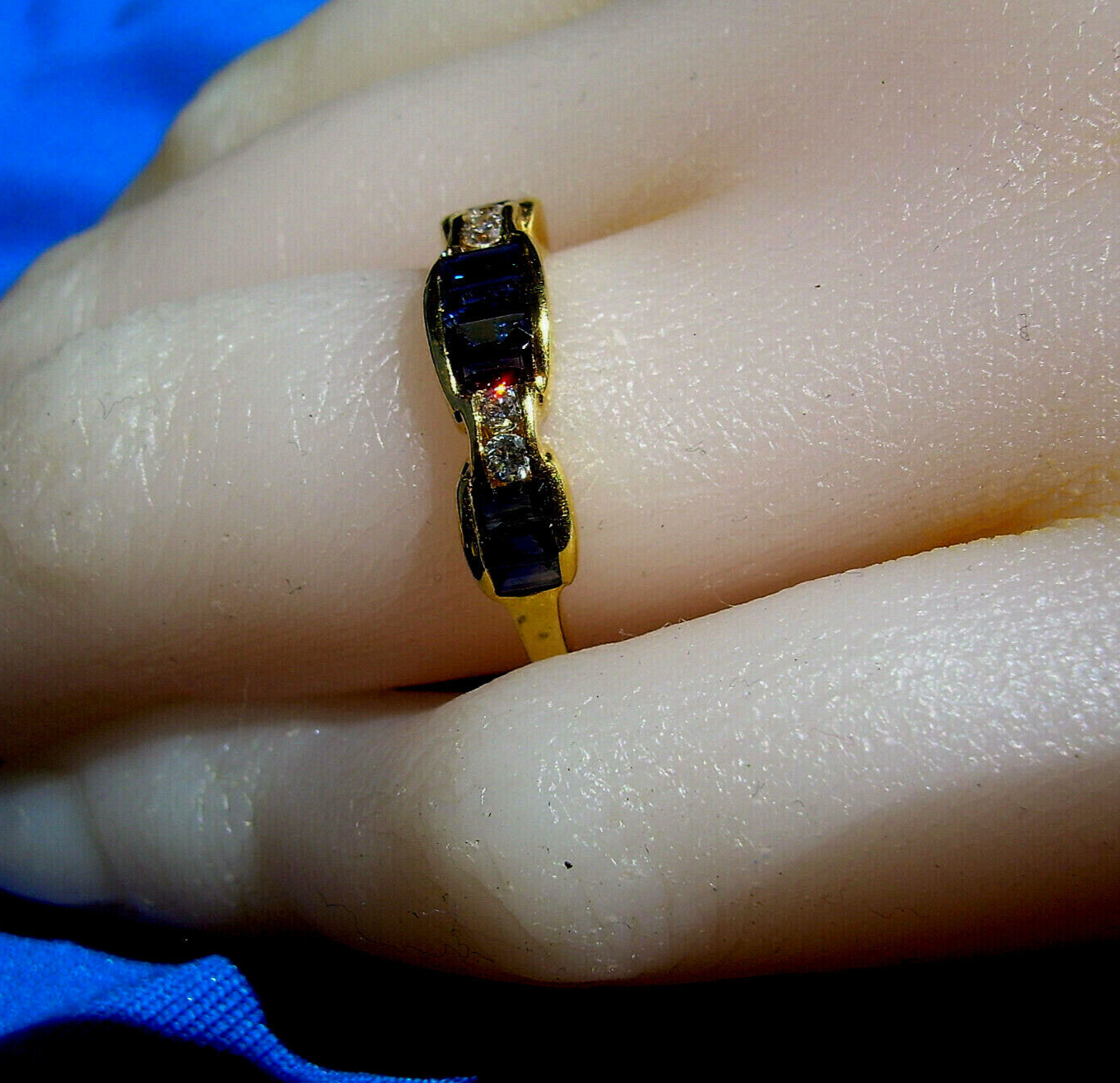 Earth mined Diamond Sapphire Deco Wedding Band Anniversary Ring Solid 18k Gold
