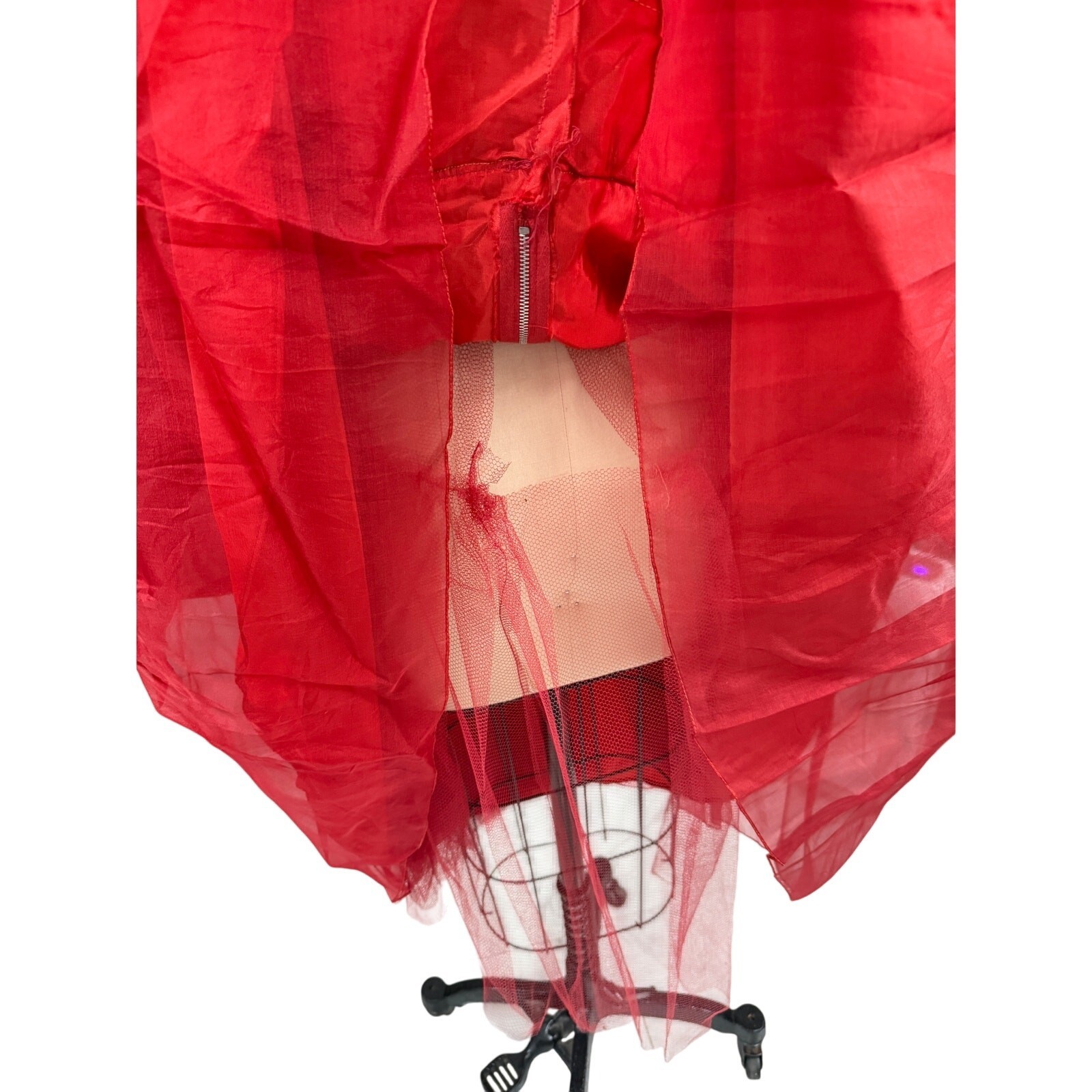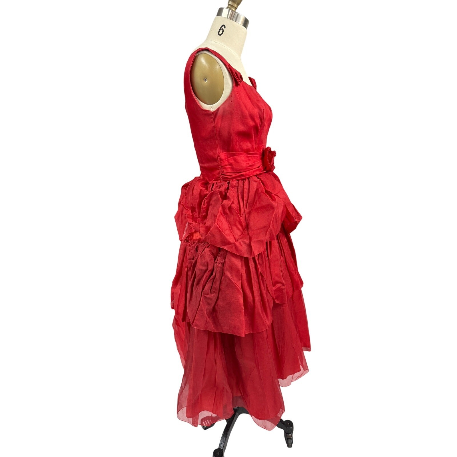 Sad Party Girl Costume or Rescue Project? 1950s Red Silk Organdy Dress (Minor Underarm Damage) Sz 6