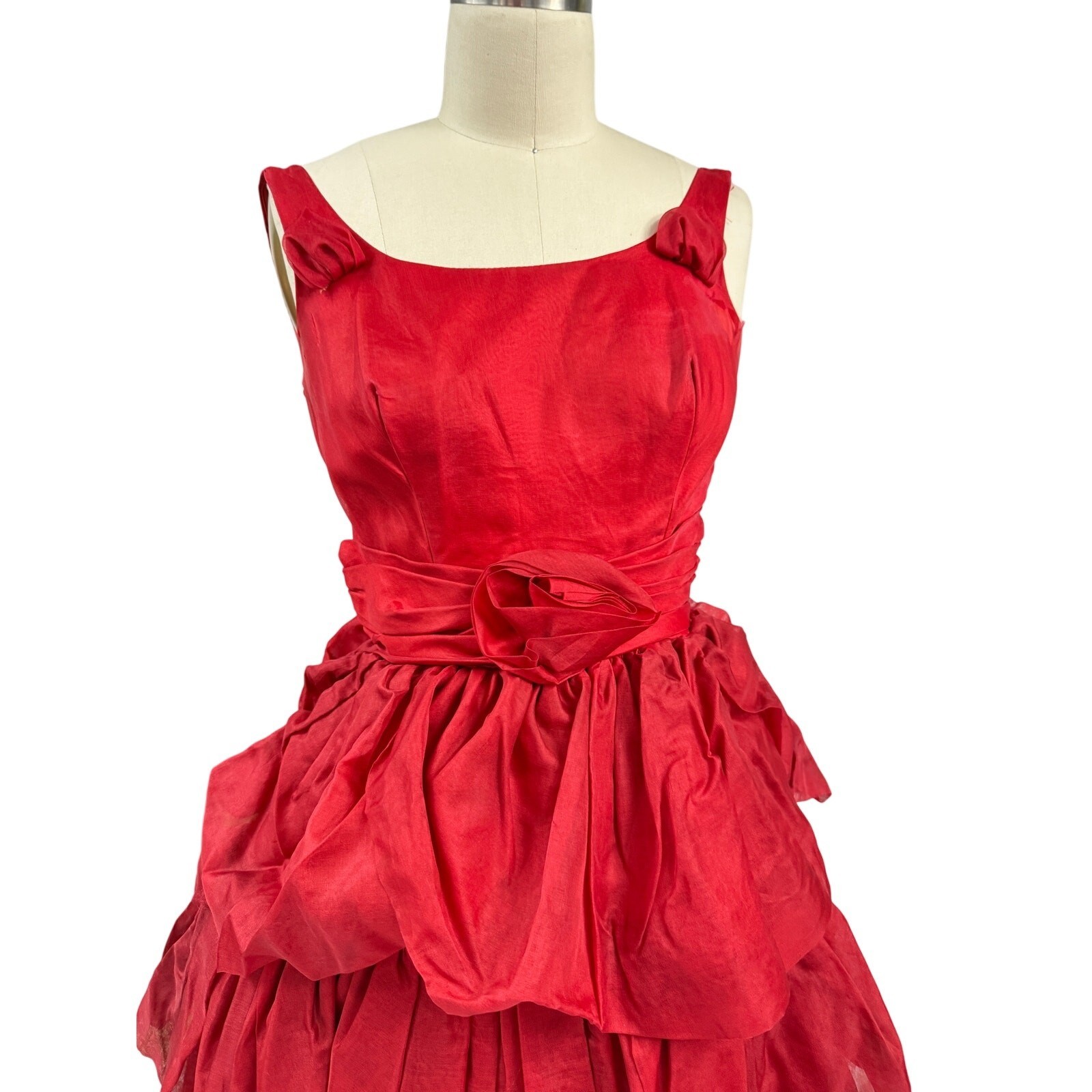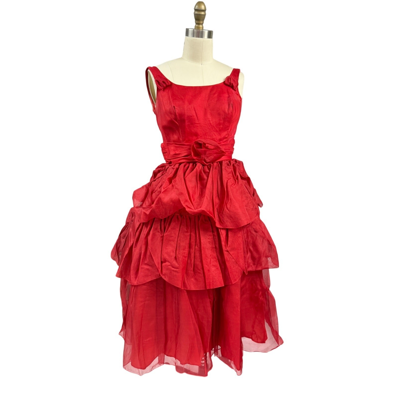 Vtg 1950s Red Dress Silk Organdy Party Dress and 46 similar items