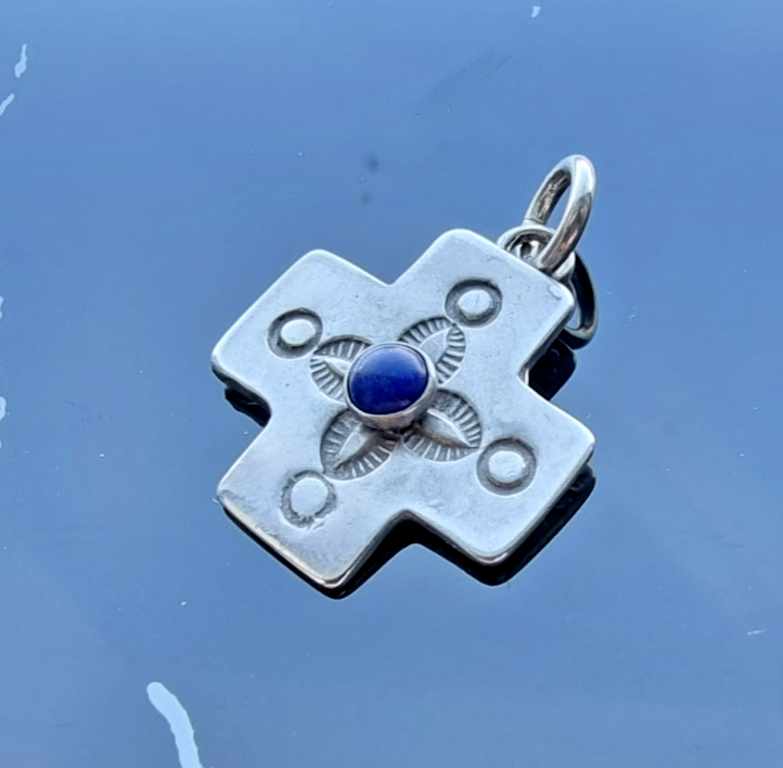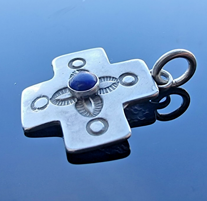NAVAJO VINTAGE 925 STERLING SILVER NATURAL LAPIS LAZULI CROSS PENDANT