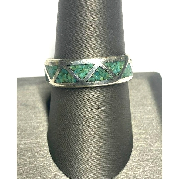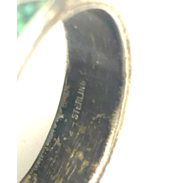 UNISEX 925 STERLING SILVER WITH TURQUOISE INLAY BAND RING SIZE 9 SKY