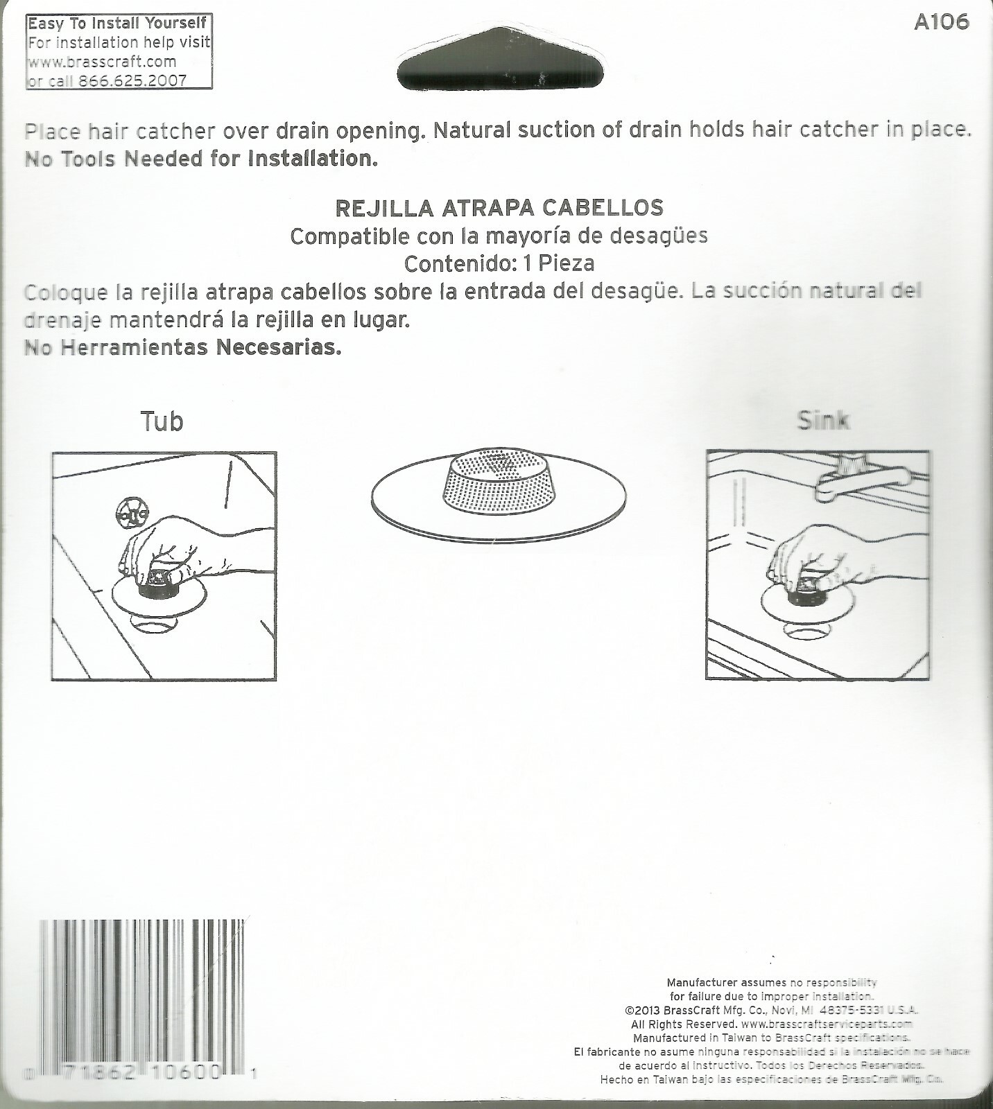 Rubber HAIR STRAINER protect tub sink Drain catch Catcher White PEERLESS A106