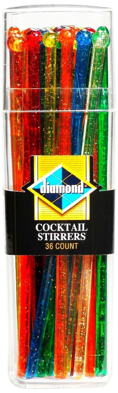FOR SALE IS ONE (1) NEW SEALED CANISTER OF 36 COCKTAIL SWIZZLE STICKS STIRRERS by DIAMOND BRANDS MPN 16283 UPC# 048789162830. 6" length, HEAVY DUTY, COLORFUL ,AND REUSABLE COCKTAIL SWIZZLE STIRRERS IN THIS CLEAR and DURABLE ACRYLIC CONTAINER DISPENSER. RED, GREEN, BLUE, YELLOW, AND CLEAR WITH A FESTIVE PARTY LOOK, THESE ARE THE ABSOLUTE HIGHEST QUALITY SOLID PLASTIC COCKTAIL STIRRERS, aka SWIZZLE STICKS ON THE MARKET, REQUIRED FOR ANY BAR OR COCKTAIL SETTING, MADE BY DIAMOND JARDEN, COMMITTED TO QUALITY WITH WORLD CLASS PRODUCTS LIKE BALL MASON JARS AND DIAMOND BRAND STRIKE ANYWHERE MATCHES. THERE SIMPLY IS NO BETTER SWIZZLE STICK, COCKTAIL STIRRER ANYWHERE. YOU MAY REUSE THESE A MILLION TIMES OVER, IF YOU WANT. YOU WILL RECEIVE ONE CLEAR PLASTIC CANISTER OF 36 DIAMOND BRANDS COCKTAIL PLASTIC STIRRERS SHIPPED BY USPS FIRST CLASS.....