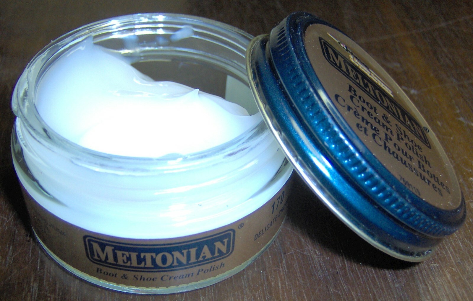 FOR SALE IS ONE (1) NEW GLASS JAR OF MELTONIAN NUMBER 170 DELICATE CREAM BOOT SHOE CREAM POLISH 1.55 ounce GLASS JAR BY MELTONIAN BRAND MPN 170. GENUINE MELTONIAN BRAND DELICATE CREAM, EXACTLY AS PICTURED, IS INDICATED FOR USE ON ANY COLOR SMOOTH LEATHER AND EXOTIC SKINS LIKE SNAKESKIN, OSTRICH, LIZARD, ETC. DO NOT USE ON EEL SKIN. RECOMMENDED BY MANY HIGH END AND COUTURE LEATHER MANUFACTURERS OF SHOES, PURSES, HANDBAGS, LEATHER AND APPAREL LIKE LEATHER COATS, ETC. CONTAINS NO COLOR PIGMENT, ONLY PREMIUM CONDITIONING AGENTS AND QUALITY NATURAL WAXES TO DELIVER A PREMIUM TREATMENT TO YOUR BEST LEATHERS. THIS IS A TIME HONORED FORMULATION (passed down to Meltonian from Propert's many years ago during a corporate acquisition). THE #170 DELICATE CREAM RECIPE USES ONLY THE BEST INGREDIENTS. MELTONIAN DELICATE CREAM IS A RICH AND CREAMY BLEND THAT WILL BRING LIFE AND LUSTRE BACK TO YOUR ITEM. JUST APPLY WITH A SOFT CLOTH, RUB IT IN, THEN BUFF WITH A FINISHING CLOTH OR BRUSH BEFORE IT DRIES (i prefer a soft 100% cotton cloth, towel or old tee shirt). MELTONIAN CLEANS, POLISHES AND PRESERVES LEATHERS, PATENTS, IMITATIONS LEATHERS, LEATHER PURSES, VINYLS AND REPTILE SKINS INCLUDING ALLIGATOR, LIZARD AND SNAKE. WHEN MELTONIAN NOURISHING DELICATE CREAM IS USED FREQUENTLY IT CLEANS AND CONDITIONS YOUR BOOTS, SHOES AND LEATHER, KEEPS THE ORIGINAL LUSTRE. SMELLS GREAT WITH NO CHEMICAL ODOR, KEEPS YOUR PRECIOUS SHOES, BOOTS, LEATHER ITEMS LOOKING NEWER LONGER. MAY BE USED ON ALL COLORS INCLUDING WHITE. GOOD FOR USE ON SHOES, BOOTS, AND ALL TYPES OF SMOOTH LEATHER GRAINS INCLUDING GLOVED, SMOOTH AND DISTRESSED LEATHERS. NOT RECOMMENDED FOR USE ON SUEDE, NUBUCK OR NAPPED LEATHERS. YOU WILL RECEIVE ONE (1) 1.55 ounce GLASS JAR OF MELTONIAN BOOT AND SHOE CREAM POLISH IN THIS #170 DELICATE CREAM FORMULATION SHIPPED BY USPS FIRST CLASS MAIL.....