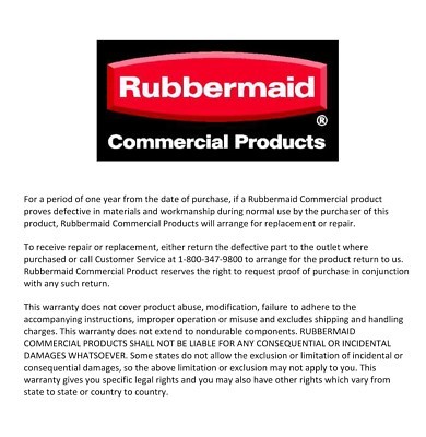 FOR SALE IS ONE (1) NEW HEAVY DUTY ROUND 14 quart (14 quarts = 3 1/2 gallons) BRIGHT RED PLASTIC UTILITY BUCKET WITH HANDLE BY BRUTE MADE BY RUBBERMAID COMMERCIAL PRODUCTS MPN FG261420RED UPC# 086876140910. THIS STURDY AND HEAVY DUTY 3.5 gallon CLASSIC FOURTEEN quart CAPACITY BUCKET FROM THE BRUTE LINE OF RUBBERMAID COMMERCIAL PRODUCTS FEATURES HEAVY DUTY THICK WALLED CORROSIVE RESISTANT MOLDED HIGH DENSITY POLYETHYLENE (HDPE) BRIGHT RED PLASTIC, WIDE AND LONG POUR SPOUT IS DESIGNED FOR EASY POURING WITHOUT BACKSPLASH, RAISED MOLDED INTERIOR GRADUATION MARKS TO INDICATE OUNCE(s) AND LITER(s), PINT(s), QUART(s) AND GALLON(s). THESE INTERIOR GRADUATION MARKS ARE EASY TO SEE AND RESULT IN MORE ACCURATE MEASURING WHEN MIXING, THICK WALLS ON THIS BRUTE BUCKET HELP SUPPORT HEAVY LOADS AND DURABLE METAL HANDLE WITH COMFORT GRIP. FOURTEEN quart CAPACITY WITH DIMENSIONS OF 11 1/2" tall x 11 1/2" top exterior diameter WITH 9 1/2" bottom exterior diameter. THIS BRIGHT RED COLOR BUCKET IS EASY TO SEE. THE BRUTE SERIES OF PLASTIC CONTAINERS BY RUBBERMAID COMMERCIAL DIVISION ARE FAMOUS FOR THEIR QUALITY AND THEY ARE NEAR INDESTRUCTABLE. THIS STURDY AND HEAVY DUTY RED BUCKET IS GREAT FOR MIXING, TRANSPORTING FLUIDS, MIXING, POURING, BLENDING YARD OR CHEMICAL PRODUCTS, WASHING YOUR CAR. TRUCK, OR USE AS A MOP OR CLEANUP BUCKET, IT WILL BECOME YOUR GO TO BUCKET OF CHOICE, THE BRUTE SERIES OF COMMERCIAL GRADE PRODUCTS ARE MADE IN THE USA BY THE COMMERCIAL PRODUCTS DIVISION OF RUBBERMAID, A NAME YOU CAN TRUST. THIS RED BUCKET FEATURES ONE YEAR MANUFACTURERS WARRANTY (see pictures for manufacturers warranty). YOU WILL RECEIVE ONE (1) HEAVY DUTY 14 quart = 3 1/2 gallon RED BUCKET WITH HANDLE BY BRUTE RUBBERMAID COMMERCIAL PRODUCTS SHIPPED BY THE SHIPPER OF MY CHOICE, DUE TO WEIGHT.....