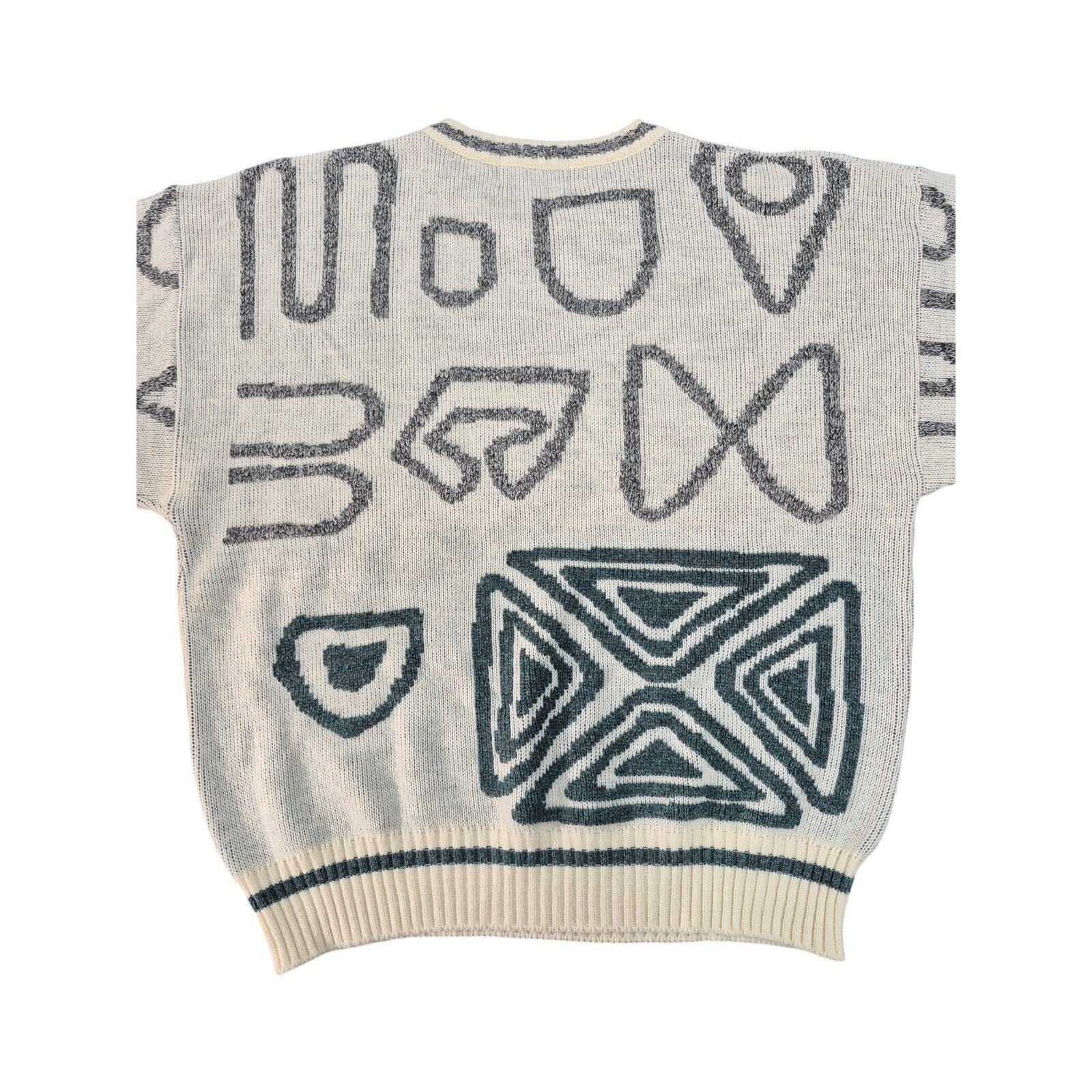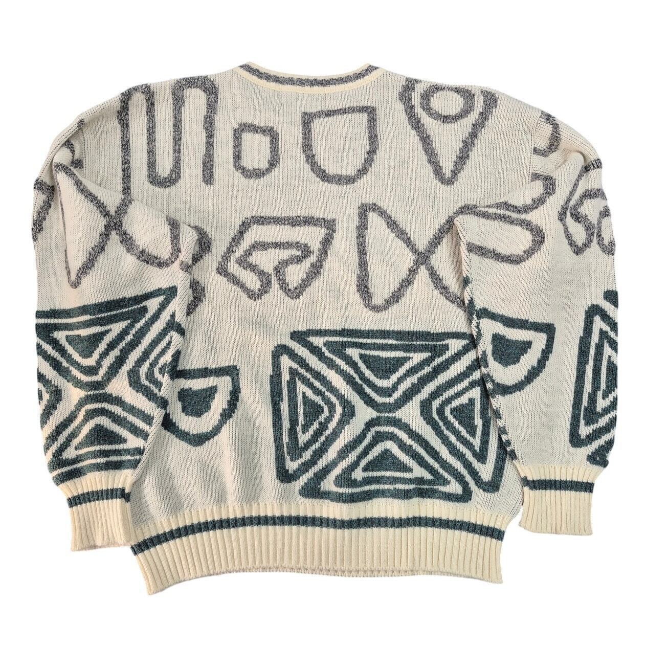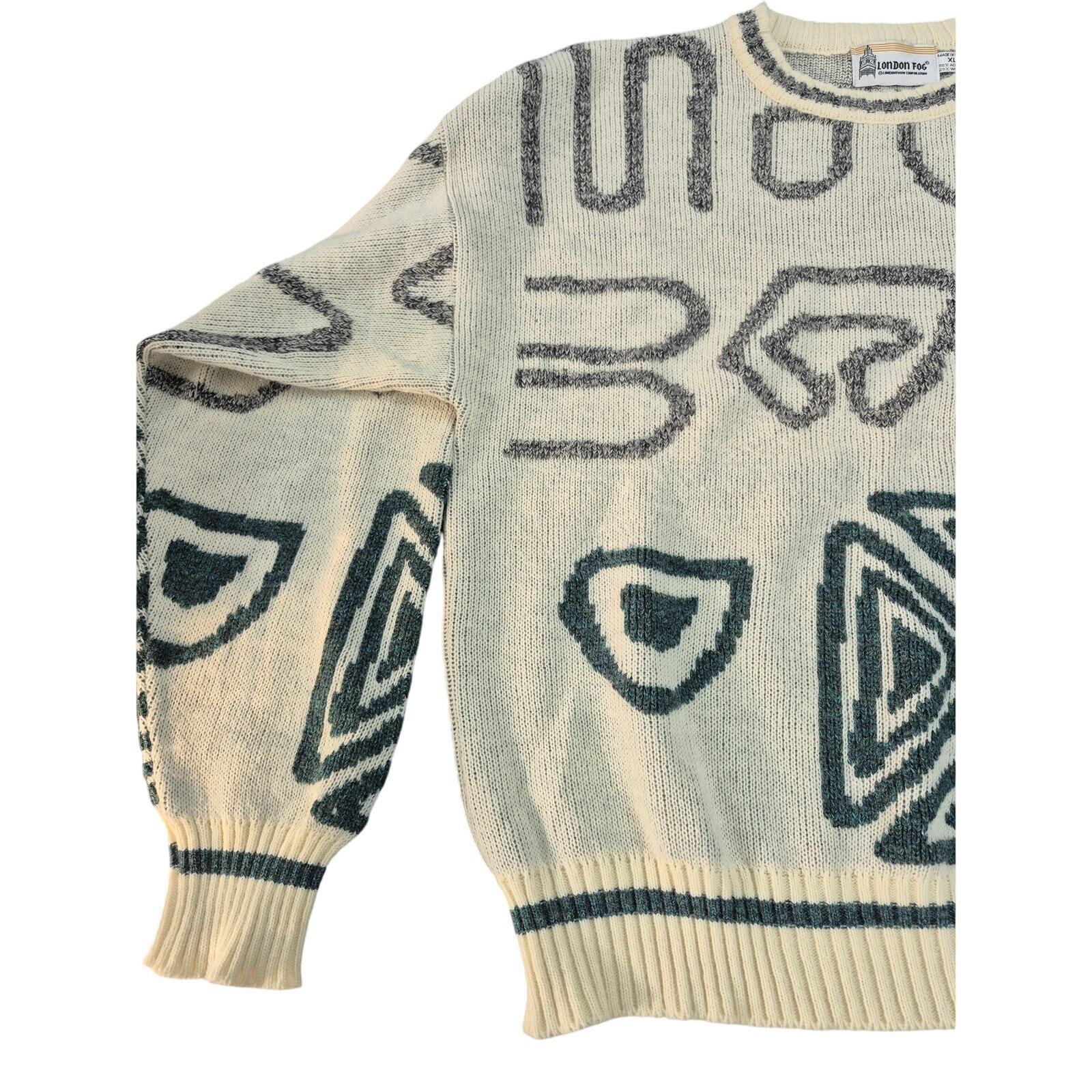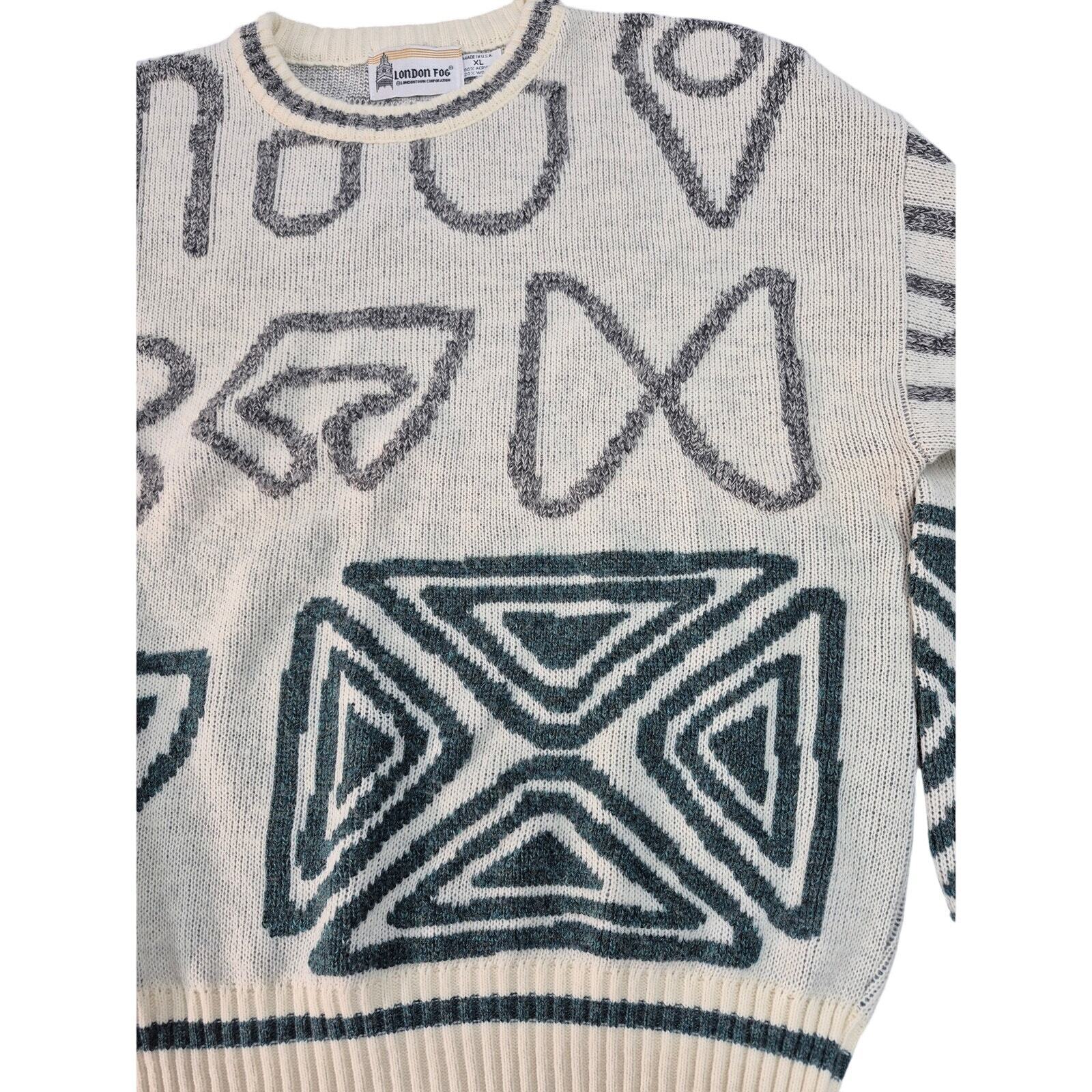 80s Men's VTG London Fog Acrylic/Wool Sweater Sz XL Cream Green/Grey Abstract Design- excellent condition.
