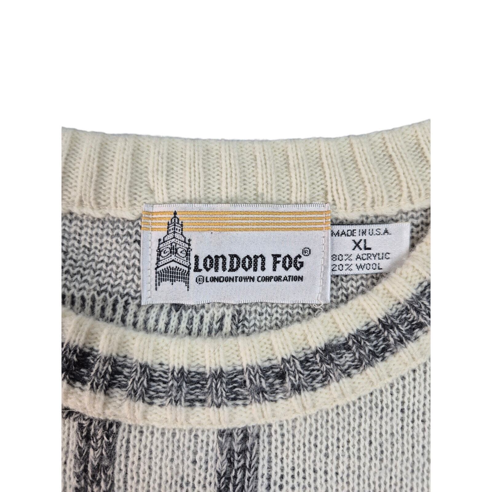 80s Mens VTG London Fog Acrylic/Wool Sweater Sz XL Cream Abstract Design