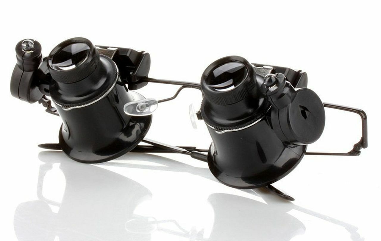 MAGNIFYING EYE GLASSES Dual Lens 20X w/ LED LightS Hands Free Jewelers Magnifier