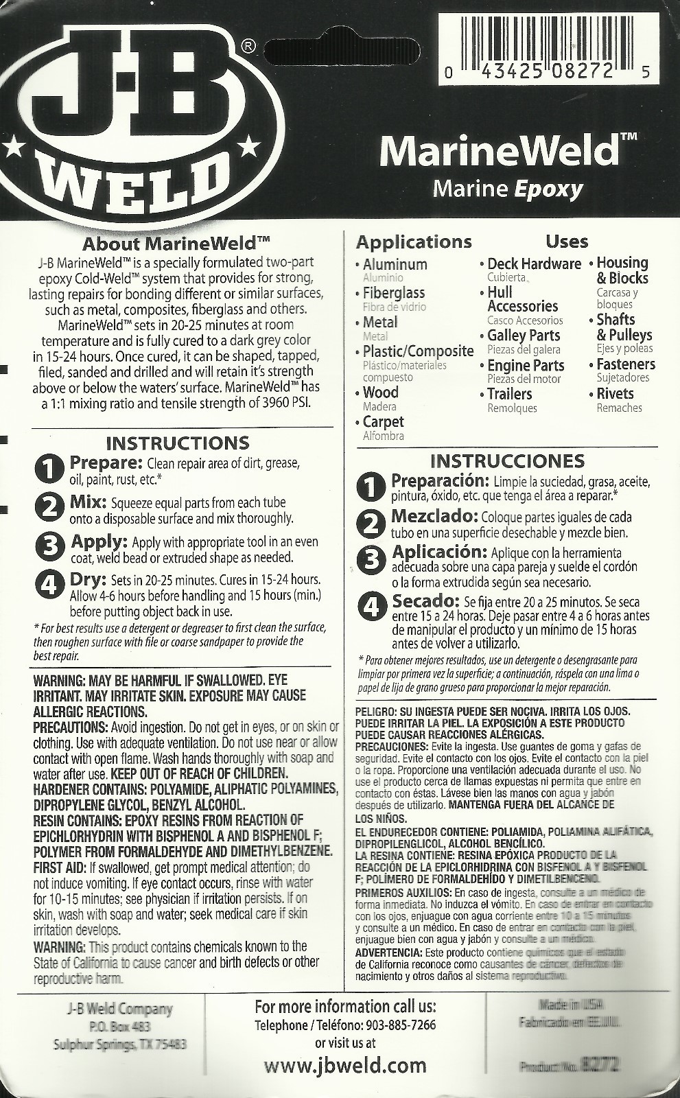 HOW TO USE MarineWeld MARINE GRADE TWO PART EPOXY ADHESIVE BY J-B WELD mpn 8272