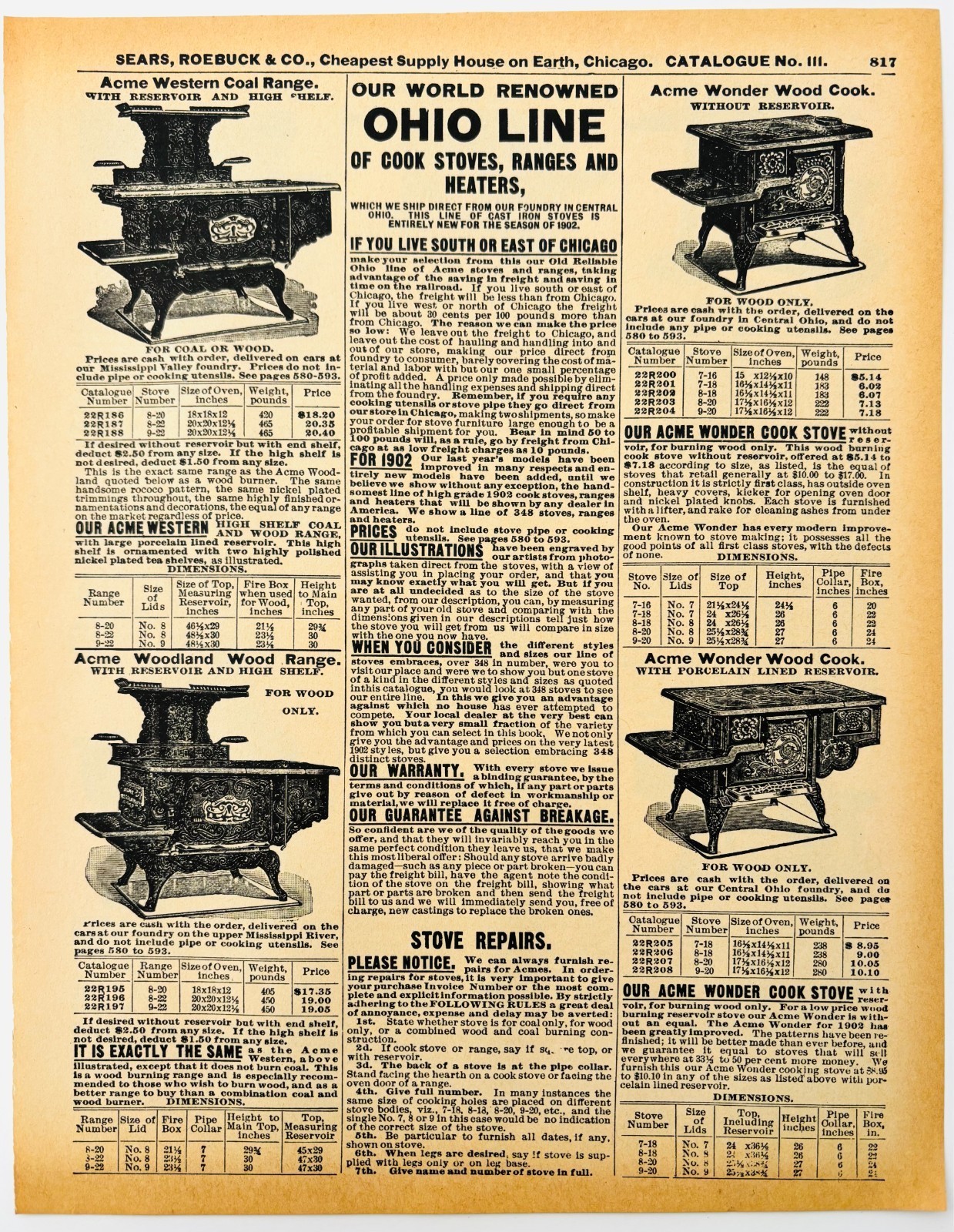 1969 ACME Ohio Range Stoves 1900 Repro Advertisement Sears Appliances DWU16E
