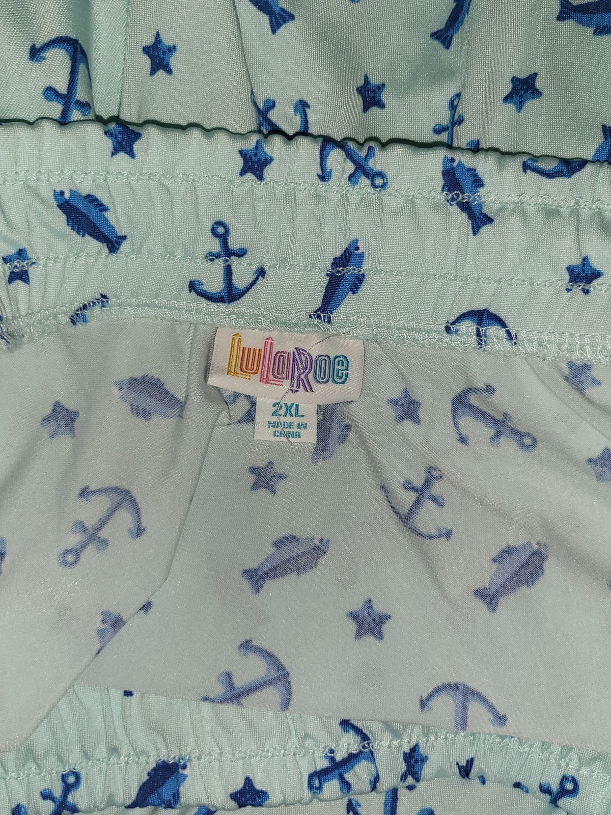 NWT WOMENS LuLaRoe MARSHA NAUTICAL PRINT PULL ON KNIT SKIRT W/ POCKETS SIZE 2XL