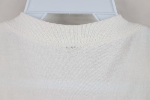 Hole back of collar. Graphics faded. Collar discolored. Yellowed. Pilling