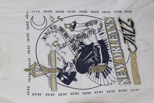 Vintage 90s Y2k Streetwear Mens Large Spell Out New Orleans Jazz Music T-Shirt added to cart.