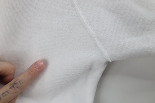 Blemish front near left armpit. Graphics faded. Loose thread collar. Made in USA