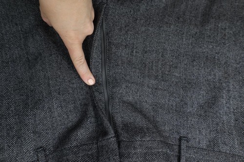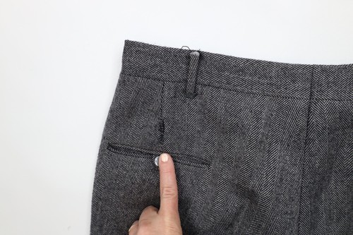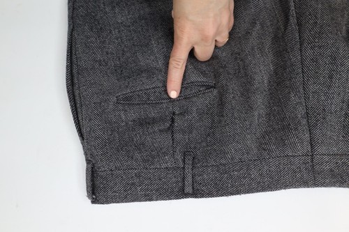 Back left belt loop ripped. Has pilling. Lining blemished. Mended holes back top. USA made
