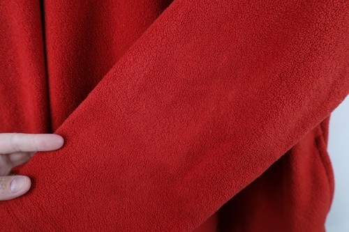 Arms blemished/discolored. Discoloring collar, arms/cuffs, bottom. Color faded. Pilling. Fabric matted