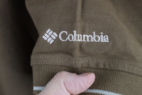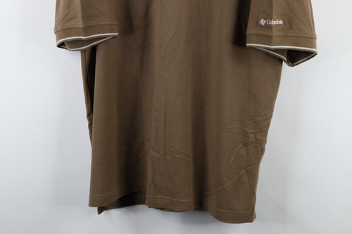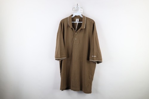 Deadstock Vintage Columbia Mens XL Spell Out Knit Short Sleeve Polo Shirt Brown