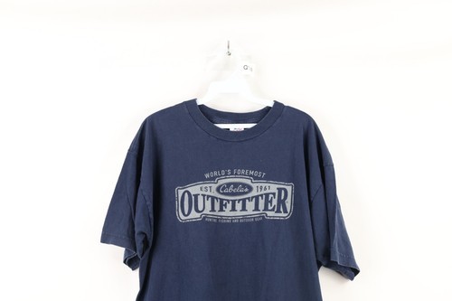Vtg 90s Cabelas Mens XL Faded Spell Out Short Sleeve T-Shirt Navy Blue Cotton