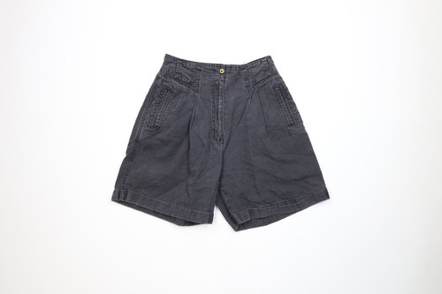 Vintage 80s 90s Streetwear Womens 8 Faded Pleated Cuffed Bermuda Shorts Black