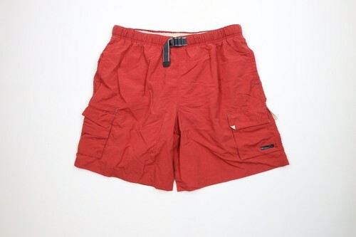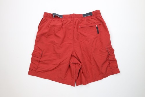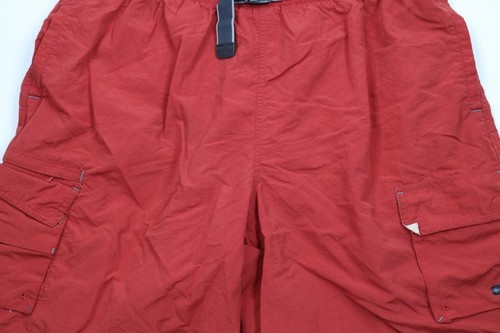 Vintage Y2K Columbia Mens XL Spell Out Belted Lined Above Knee Cargo Shorts Red