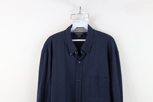 Brooks Brothers Mens Size XL Faded Cotton Knit Collared Button Down Shirt Blue