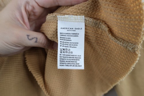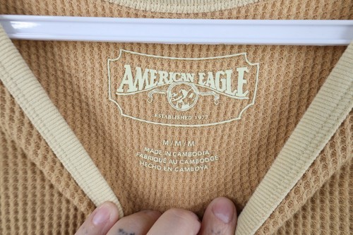 Vtg Y2K American Eagle Womens Medium Babydoll Nature Thermal Waffle Knit T-Shirt
