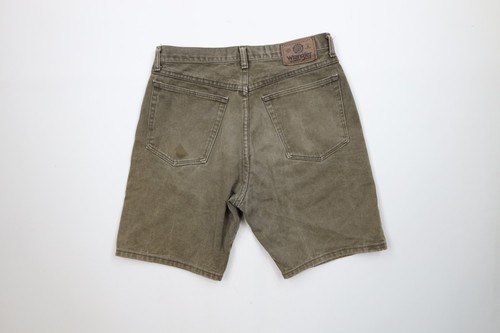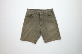 Vintage 90s Wrangler Mens 32 Distressed Above Knee Denim Jean Shorts Green USA added to cart.