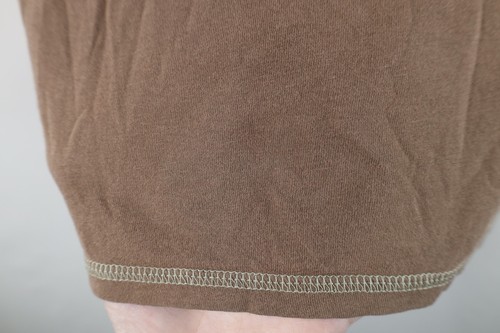 Hole back top. Dark spots front, back. Loose threads cuffs. Seams distressed. Graphics, color faded. Pilling