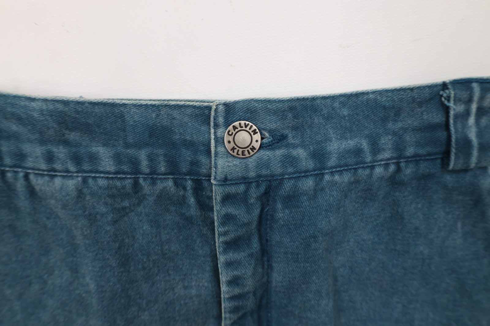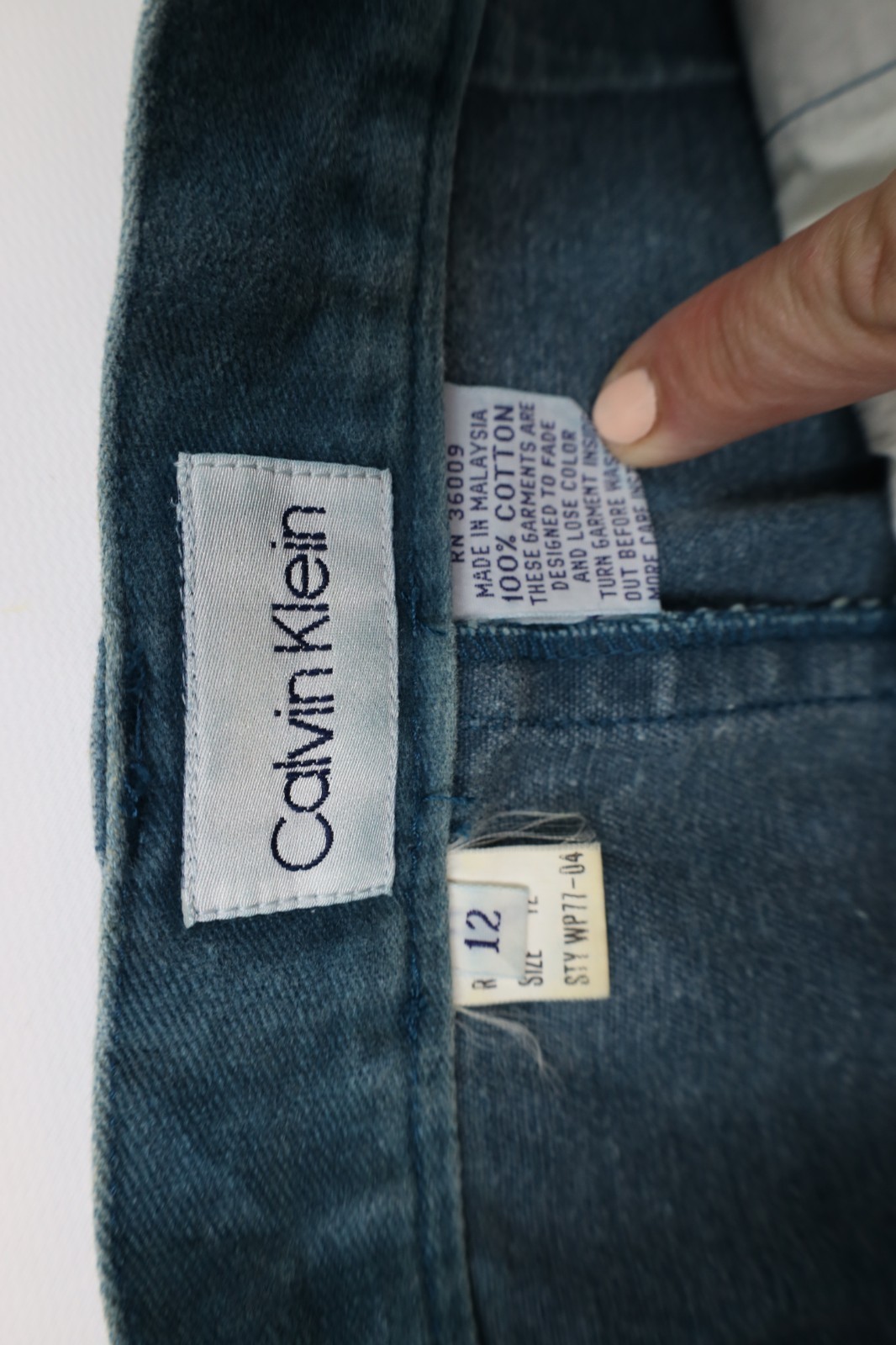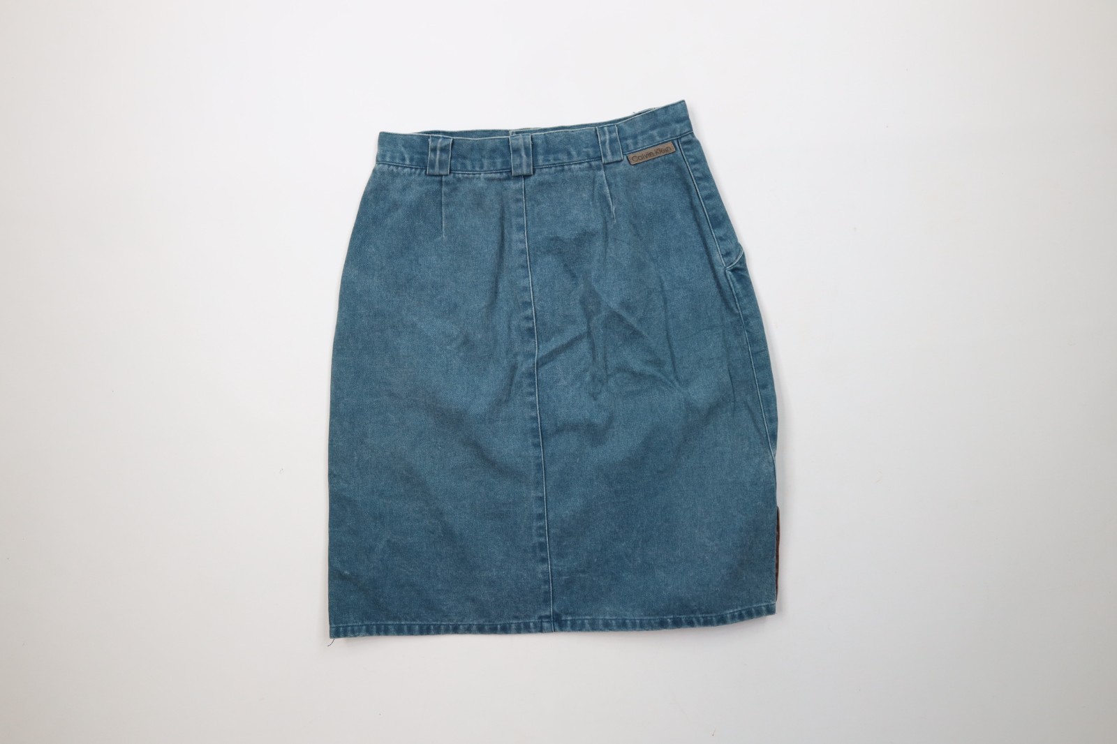 Vintage 90s Calvin Klein Womens 12 Faded Stonewash Pigment Dye Denim Jean Skirt
