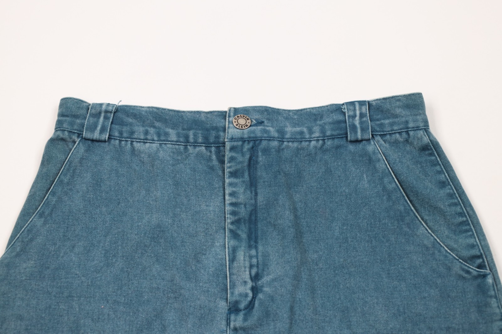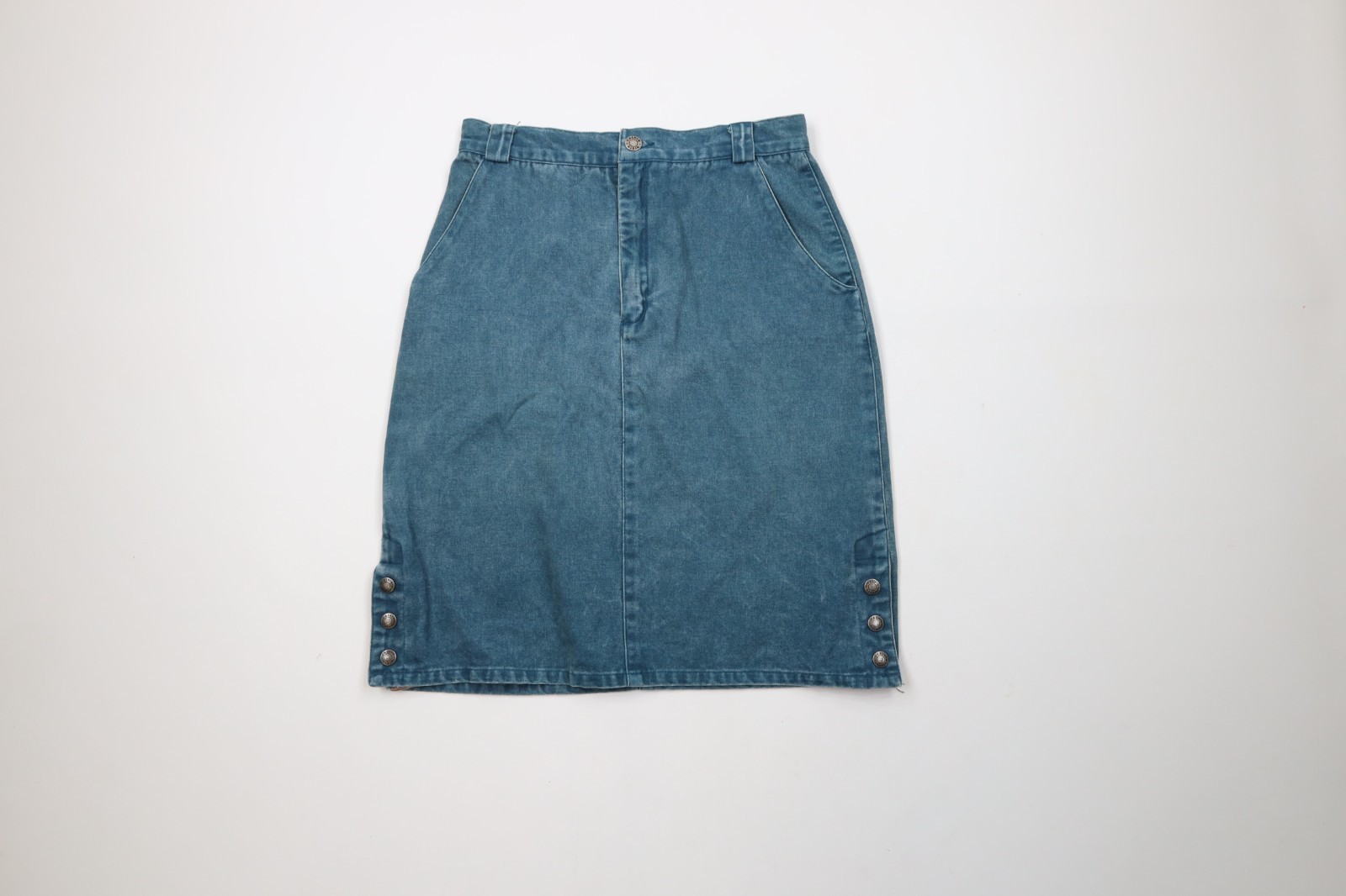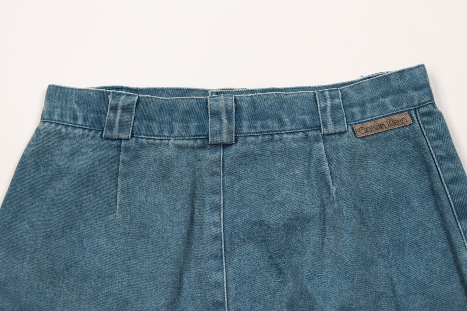 Vintage 90s Calvin Klein Womens 12 Faded Stonewash Pigment Dye Denim Jean Skirt