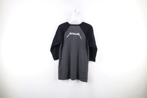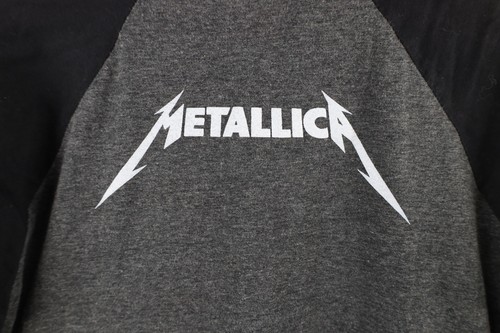 Vintage Mens Small Faded Spell Out 3/4 Sleeve Raglan Metallica Band T-Shirt