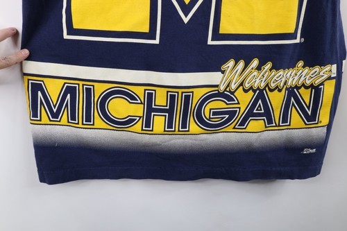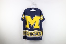 Vtg 90s Mens L All Over Print University of Michigan Short Sleeve T-Shirt USA