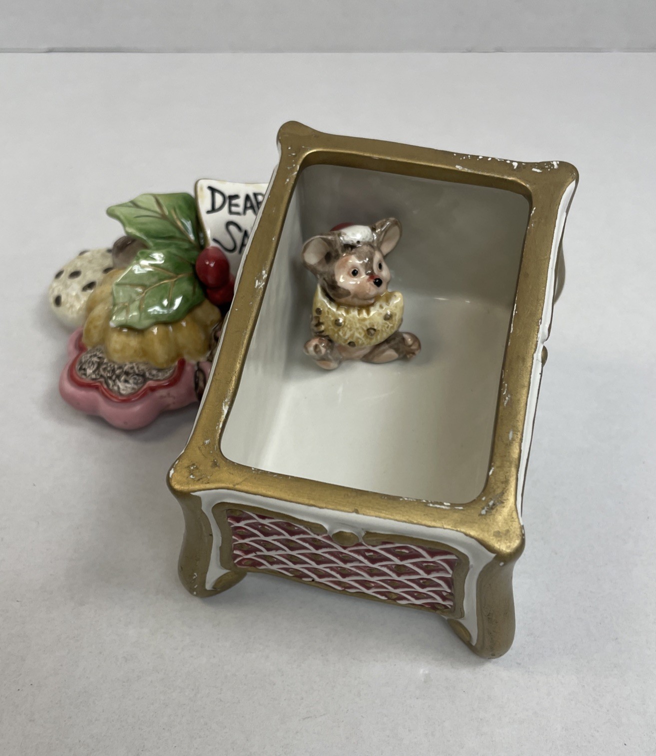Fitz &Floyd Christmas Dear Santa Trinket Cookie Gingerbread Box W/ Mouse Inside