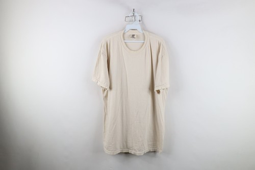 Vtg 90s Streetwear Mens XL Distressed Blank Short Sleeve T-Shirt Beige Cotton