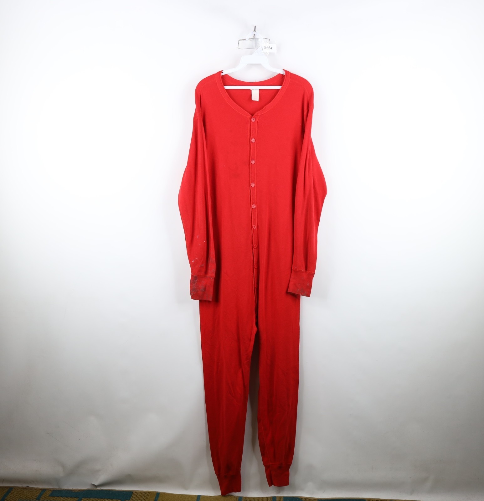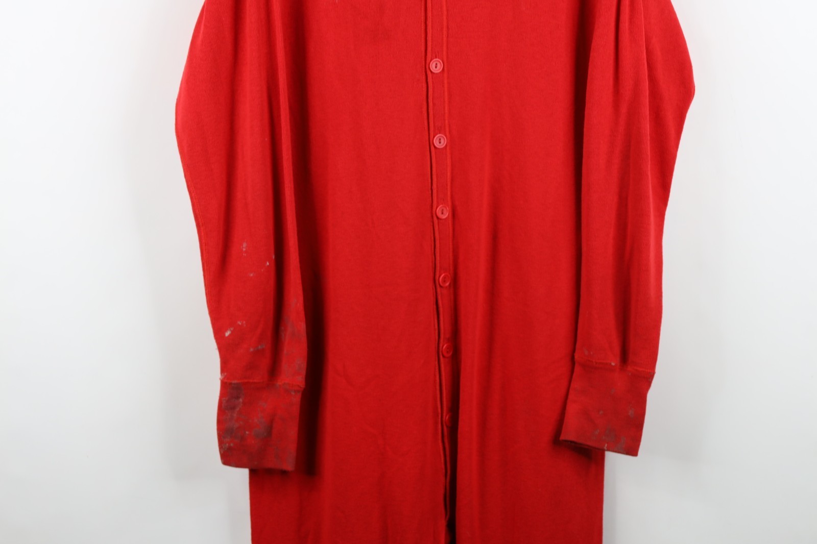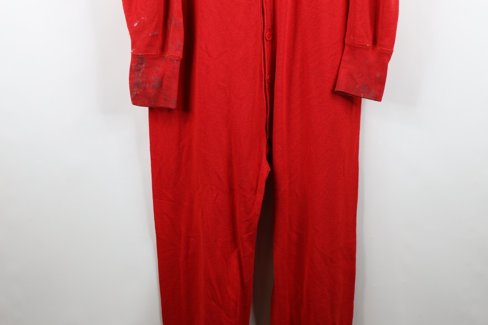 Vintage 90s Streetwear Mens Large Distressed Ribbed Knit Union Suit Pajamas Red