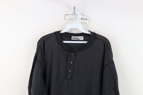 Vintage 90s Streetwear Mens Large Distressed Blank Cotton Henley T-Shirt Black