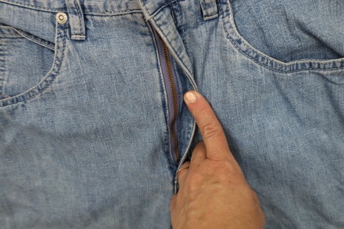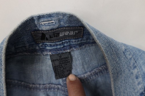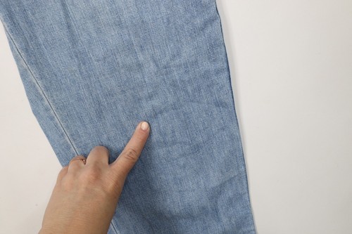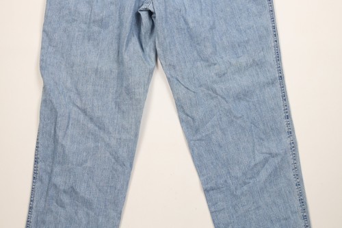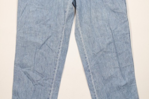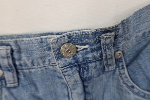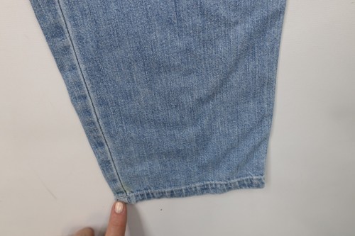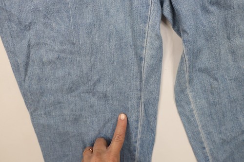 Blemishes front and back of both legs. Has discoloring and color fade. Thinner denim