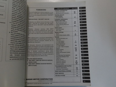 1990 Suzuki Swift, Integratore Servizio Negozio Riparazione Manuale Fabbrica OEM