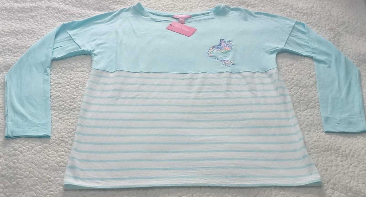 Lilly Pulitzer Finn Top Turquoise Stripes Mermaid Cotton Blend Size XS NWOT