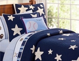 Pottery Barn Kids Twin Quilt Vintage Star Navy & White Cotton Bedding Pre Owned